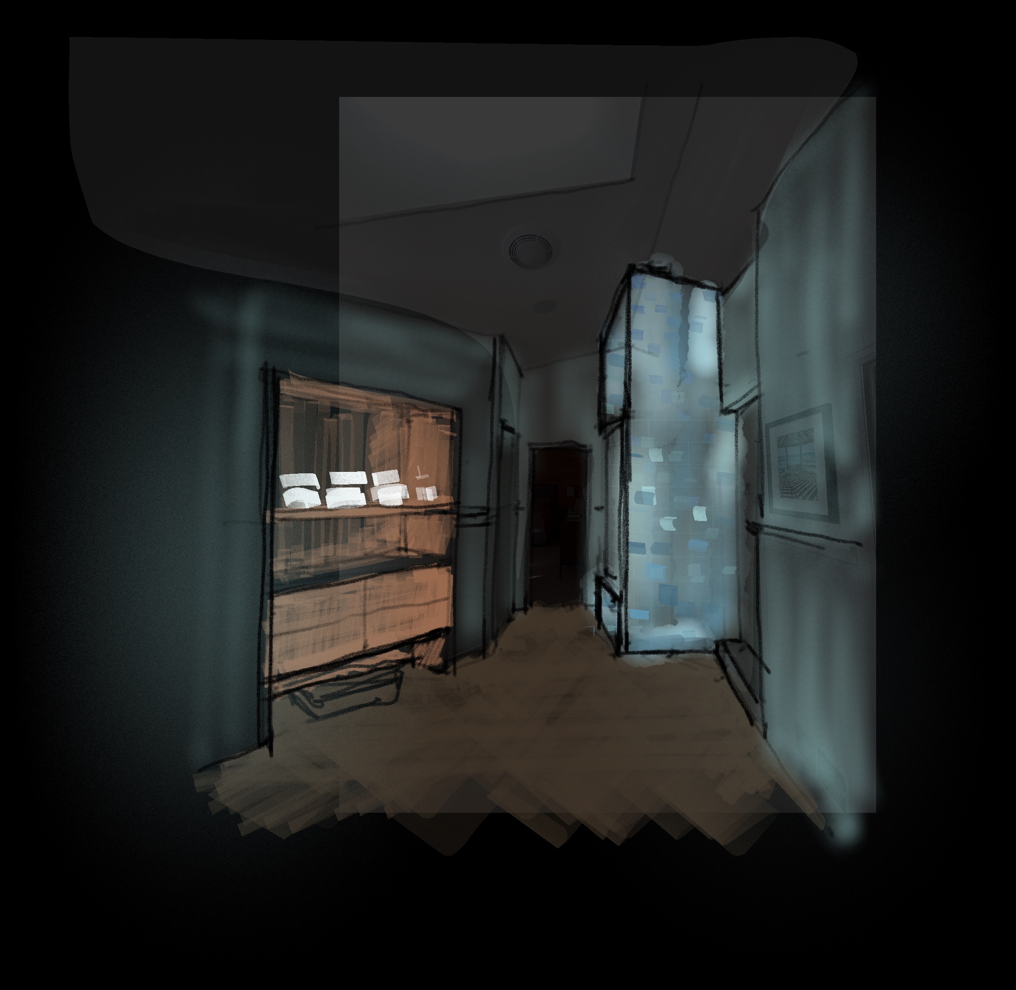 modernist interior shot turn this sketch into a photorealistic rendering architecture