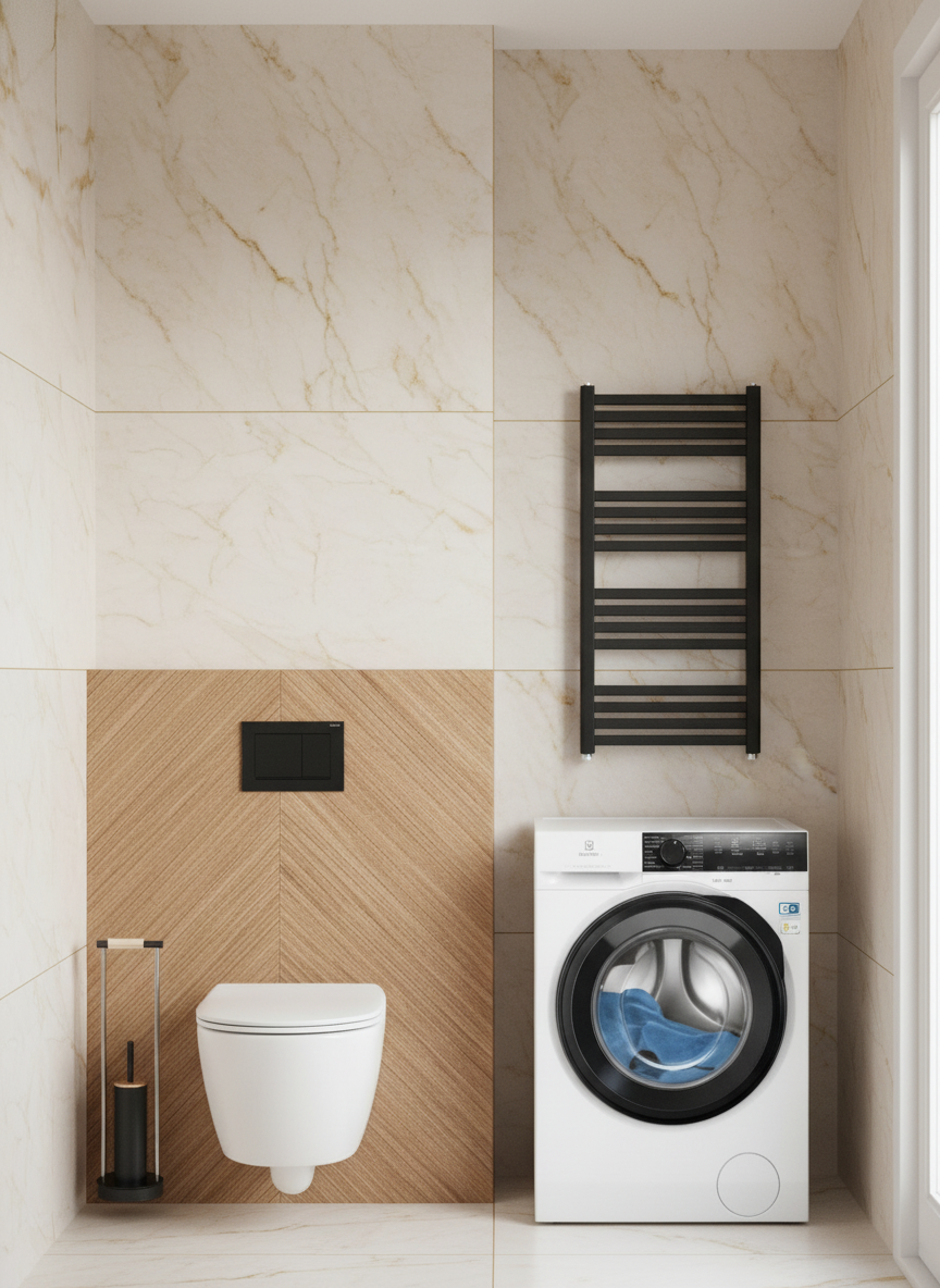 redesign the building in a dark modern industrial style using exposed concrete panels metal cladding and matte black window frames add thin horizontal led light strips integrated balcony railings and modern canopy elements above entrances keep the proportions clean but emphasize vertical and horizontal lines for depth and rhythm architecture