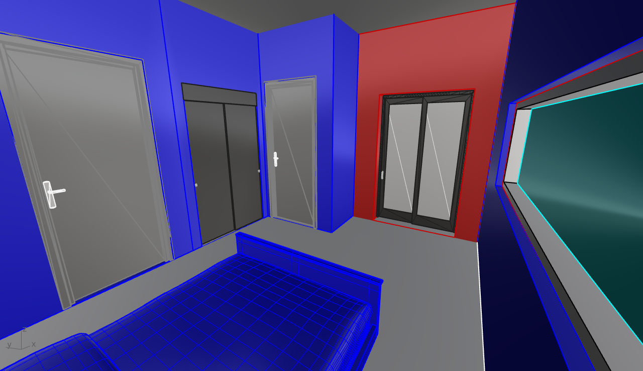 imagine ultra realistic architectural interior rendering of a two story accessory dwelling unit adu second floor bedroom interior minimalist tropical modern architecture compact sleeping space with thick plaster or concrete walls recessed second floor balcony accessed through dark framed sliding glass doors horizontal slot window on adjacent wall providing filtered daylight deep window reveals inward facing and private spatial character low ceiling height creating compression simple flush interior doors and built in closet doors smooth concrete or plaster finishes with subtle imperfections muted neutral color palette soft indirect daylight only calm and quiet atmosphere no decorative furniture emphasis strong shadow depth professional architectural visualization eye level interior perspective raw photo realism ar 4 3 style raw