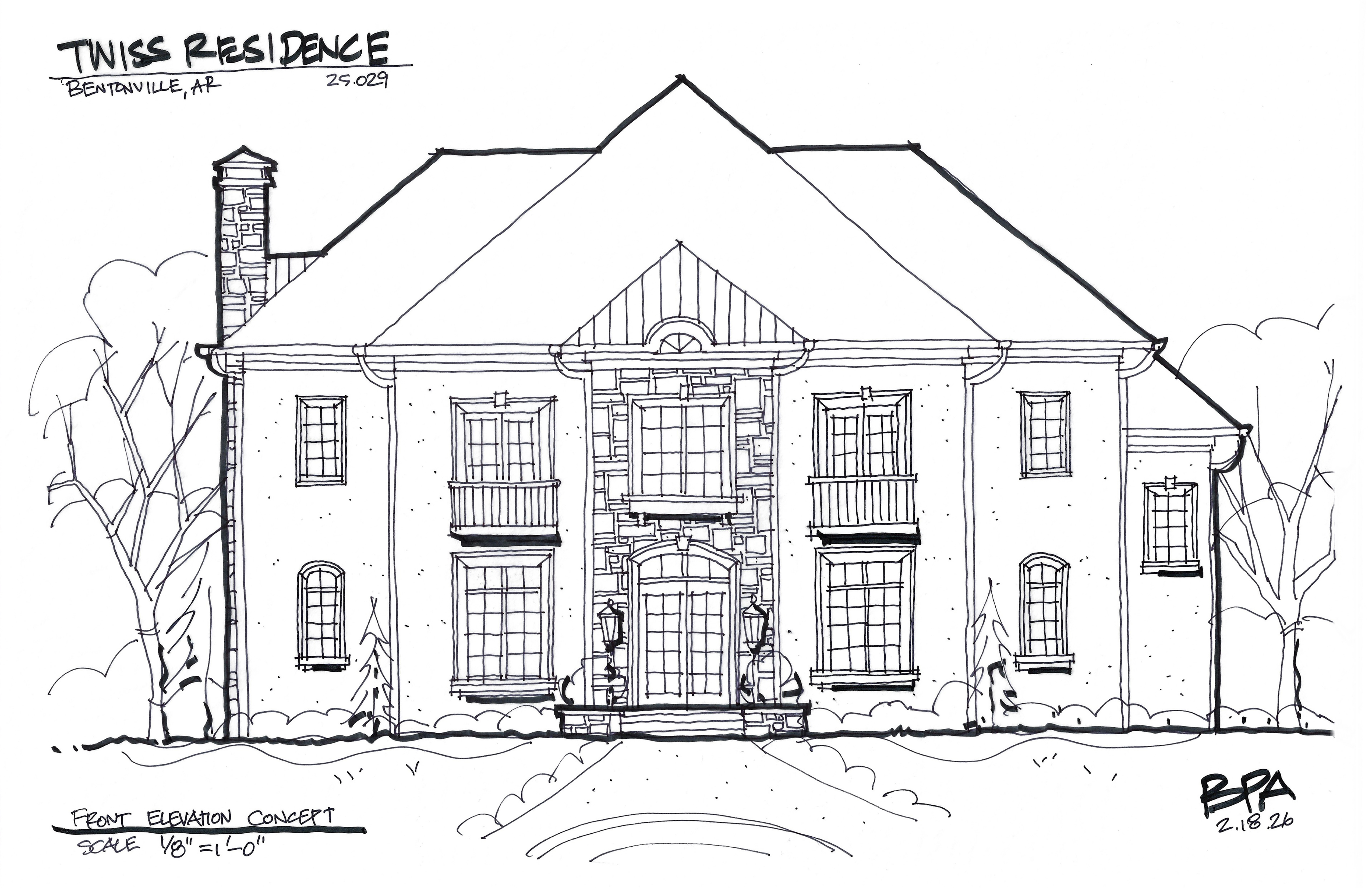 traditional home with stacked stone and light cream colored stucco and dark charcoal colored roof with manicured yard with trees behind house
