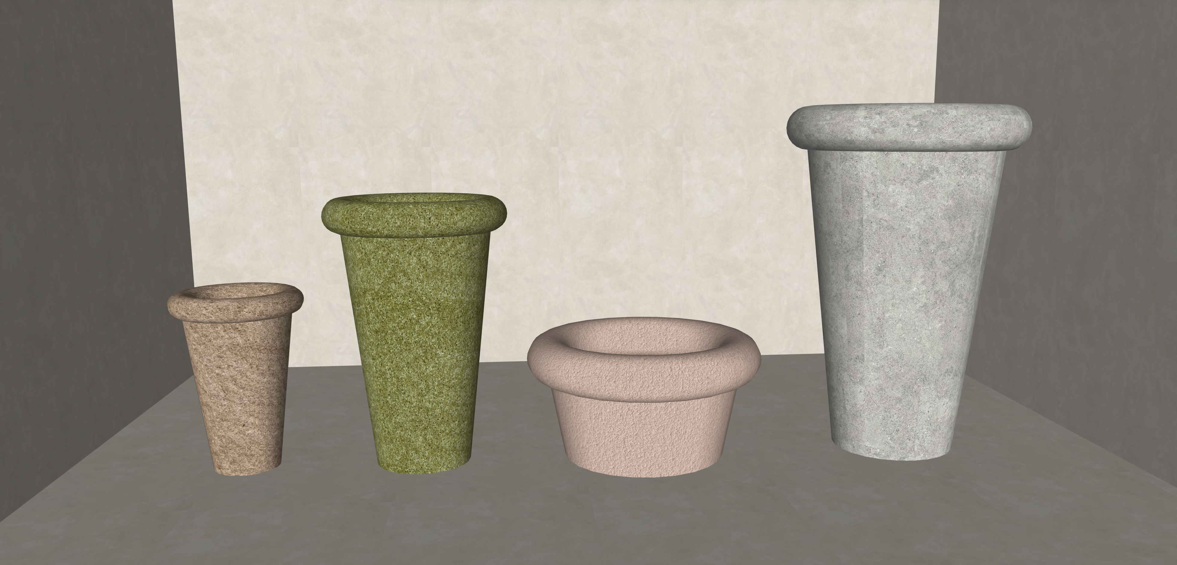 put the planter pots in the crowd of beach club in the sunset time the camera more close up to the table set