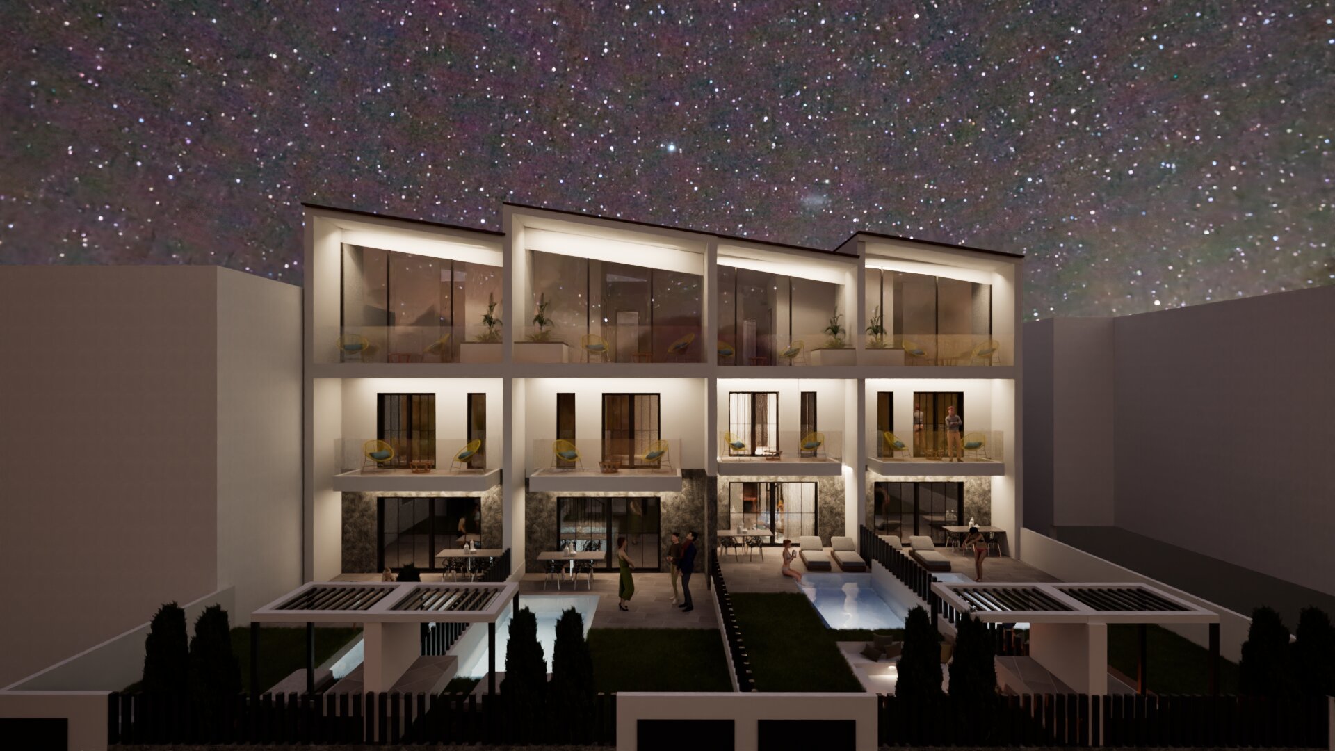 make it more realistic keep geometry add very small mediterranean vegetation keep the night sky