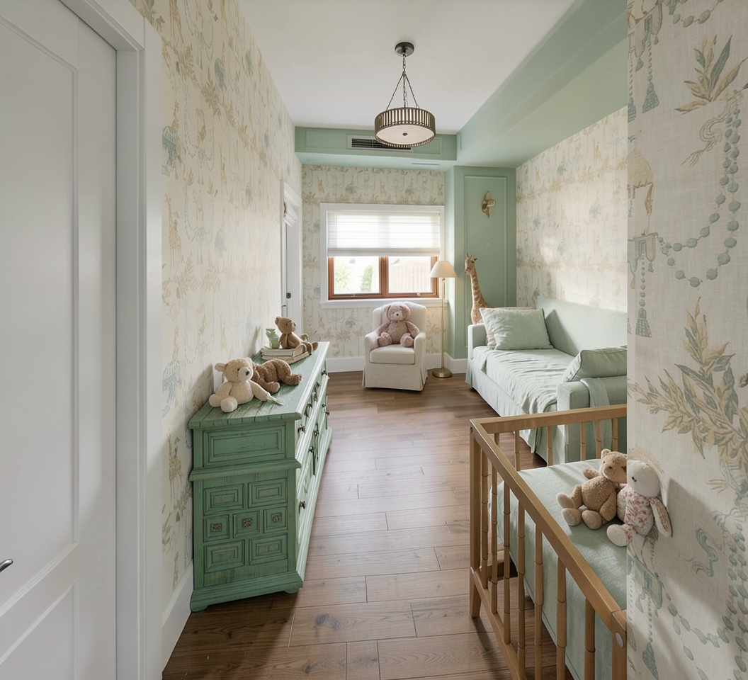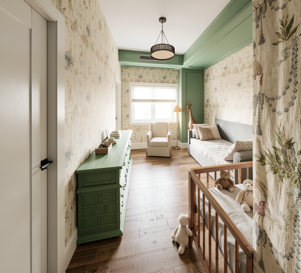 render this kitchen with light cream beige cabinets black bar pull hardware and black plumbing fixtures stainless steel appliances quartz countertop and backsplash with very light grey vein floor to be light oak walls to be sheetrock painted white and base molding to be glossy white
