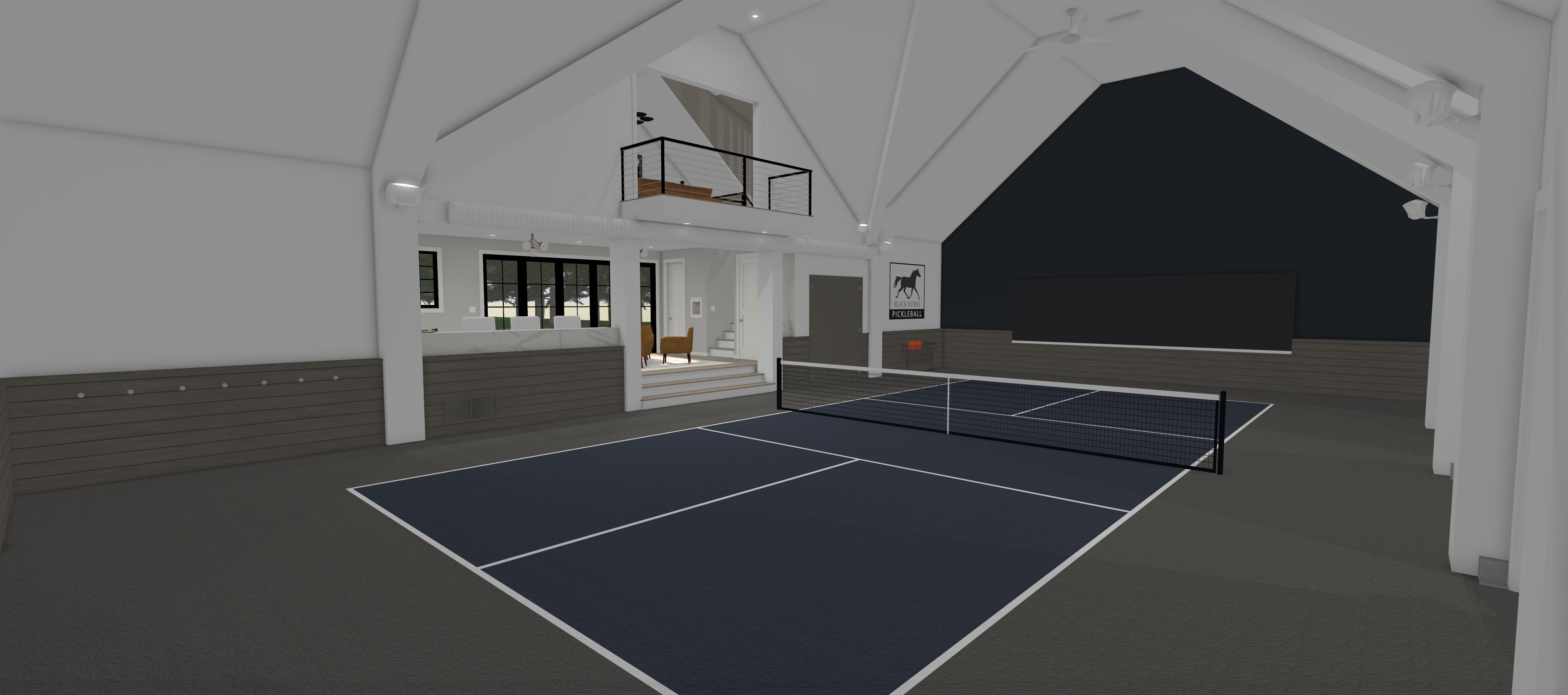 show a realistic rendering of this court with deep dark navy court and rear wall