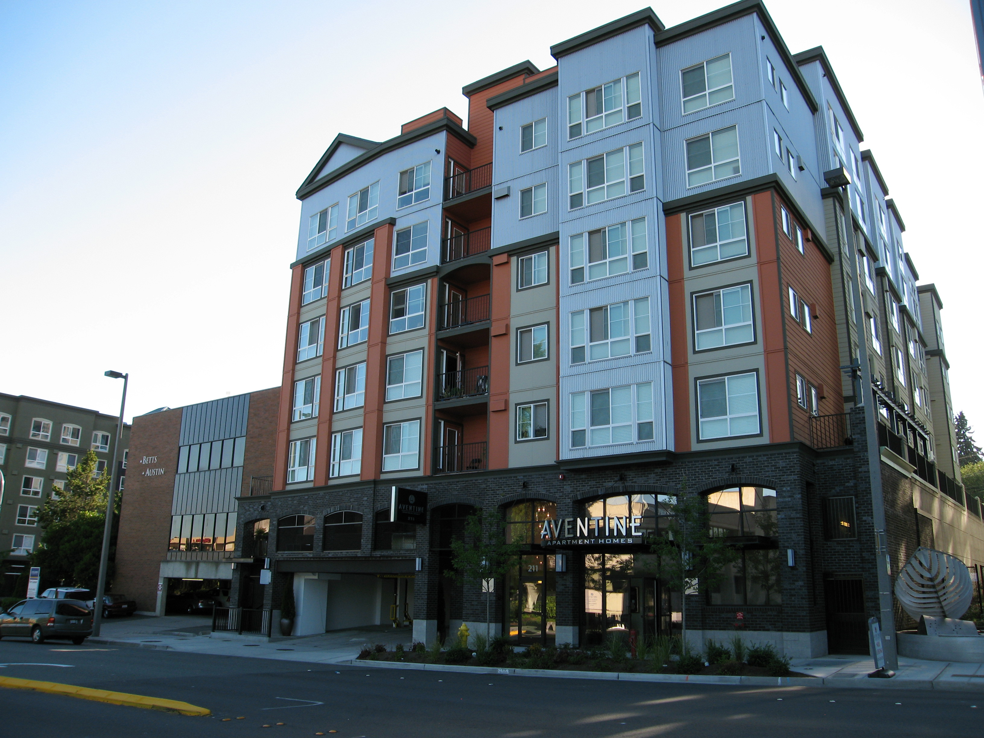 warm low mid day lighting on the building realistic seattle sky with clouds