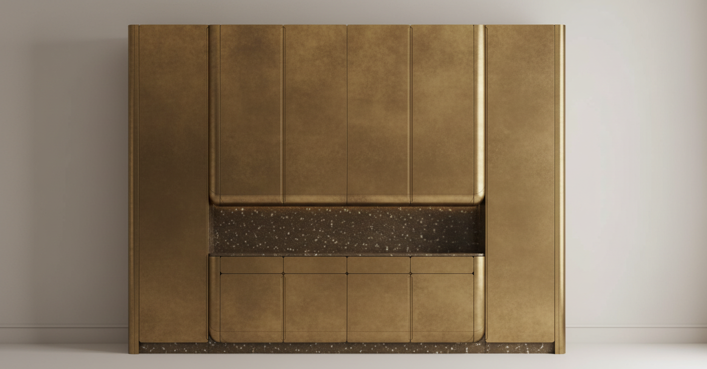 make the center cabinets pushed back a bit so theyre not sticking out but keep the same look and style in theory it would be pushed in a few inches