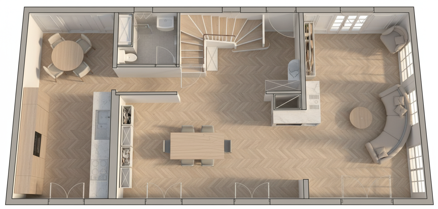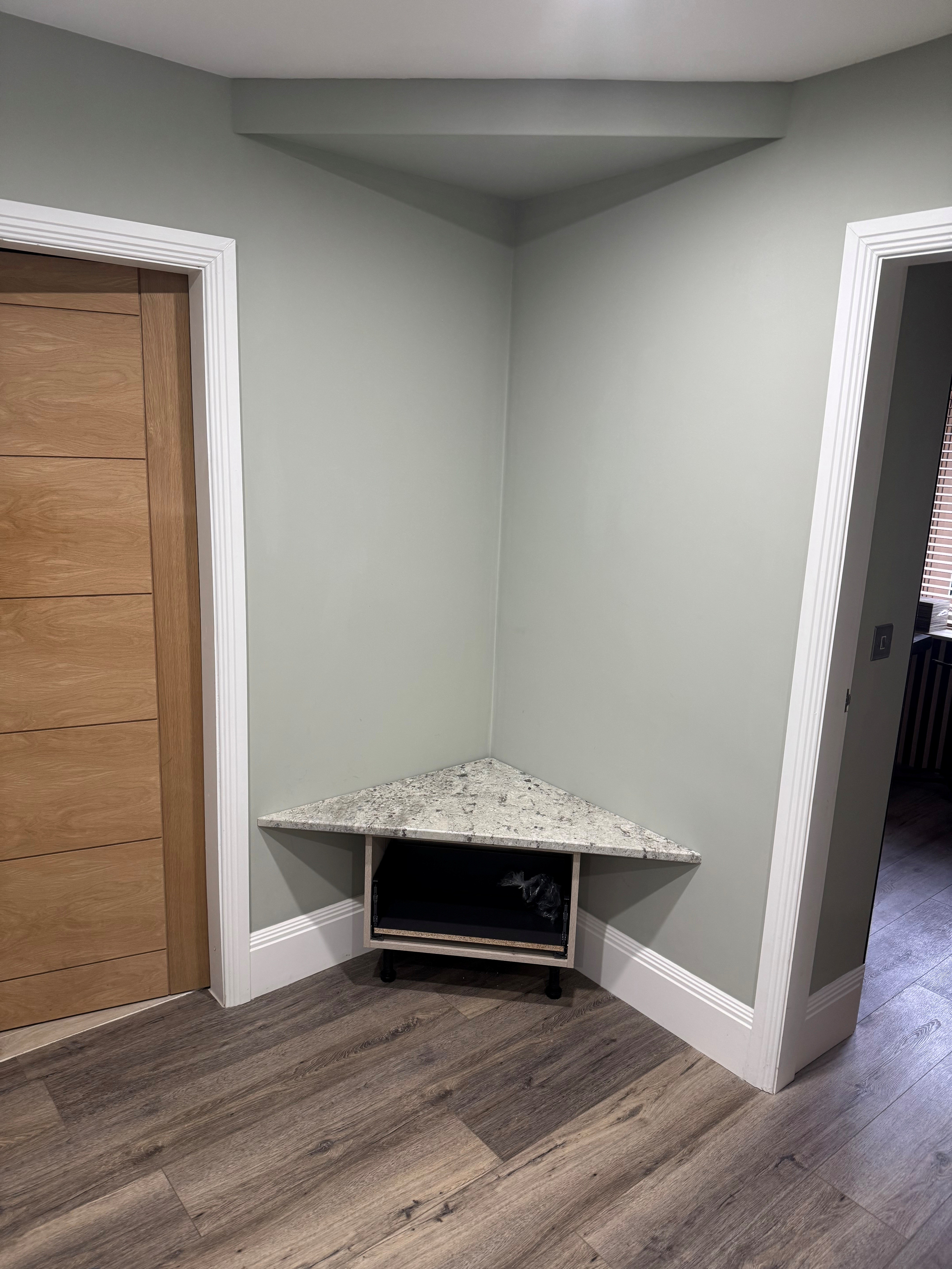 sit full height fluted reed green panels on top of the granite 10mm in from the outside edges