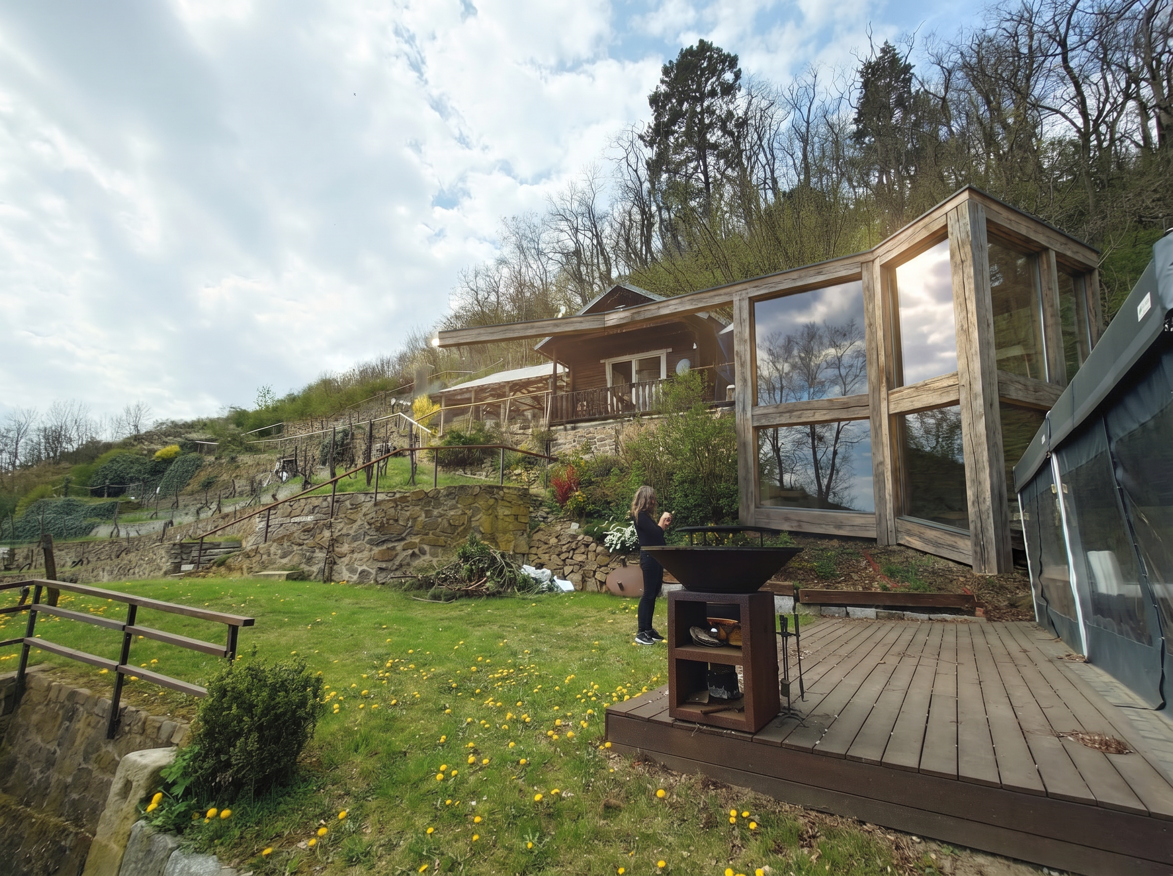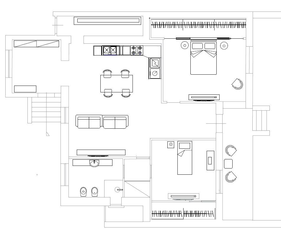 convert this floor plan into a realistic isometric 3d view of a full house show the space from an elevated angle with furniture walls and details visible stile moderno colori chiari villetta paino terrqa use the same furniture as shows on the plan do not change the orientation of the floorplan