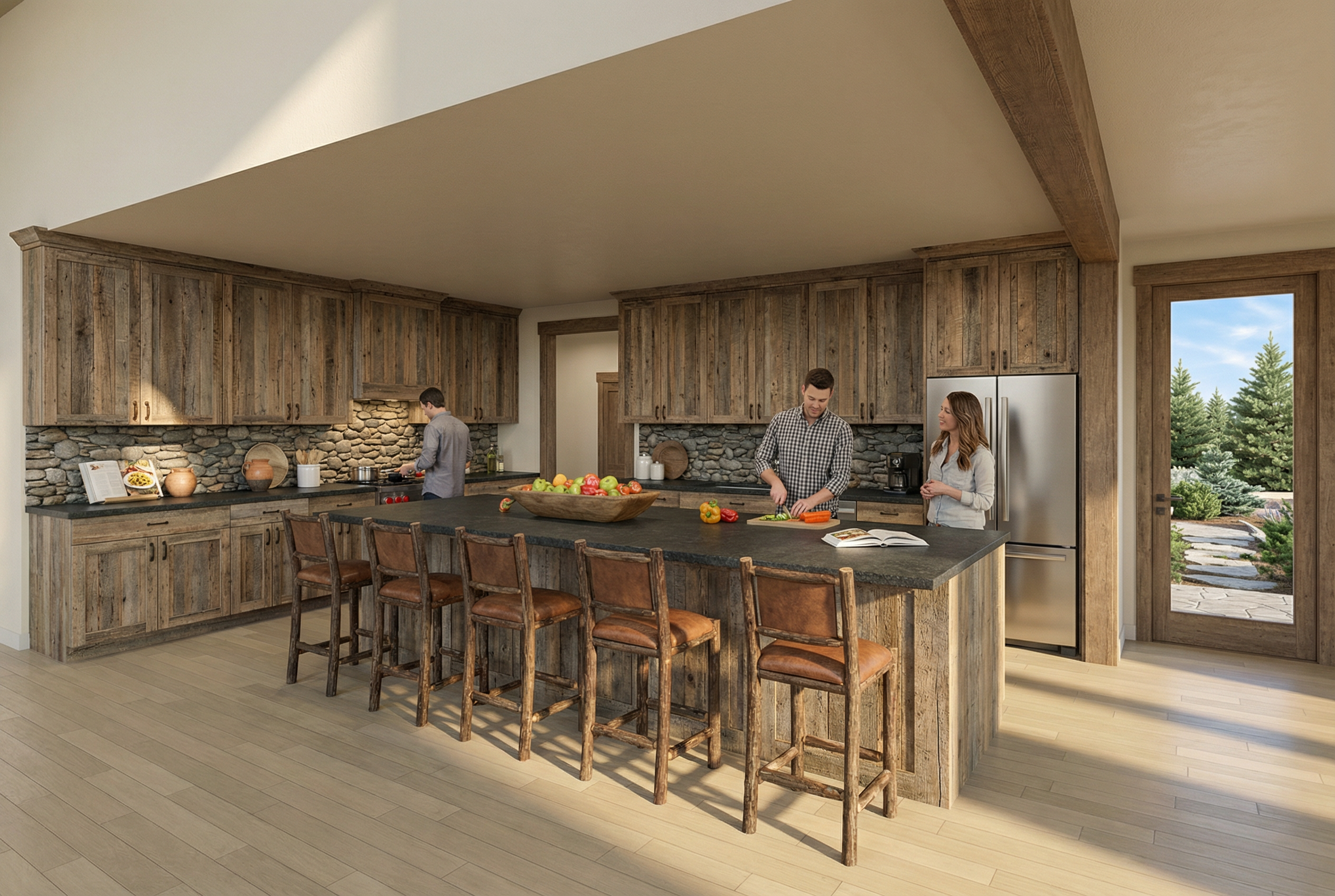this is a beautiful walkout basement apartment with tons of natural light all the cabinets along the walls are a natural stained alder with a toffee glaze the island and coffee bar on the right wall is a dark stained alder all the knobs are brushed nickel the floors are a off white tile all cabinets go all the way to the ceiling including the coffee bar cabinets