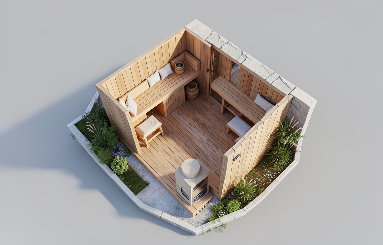 bench layout of a sauna