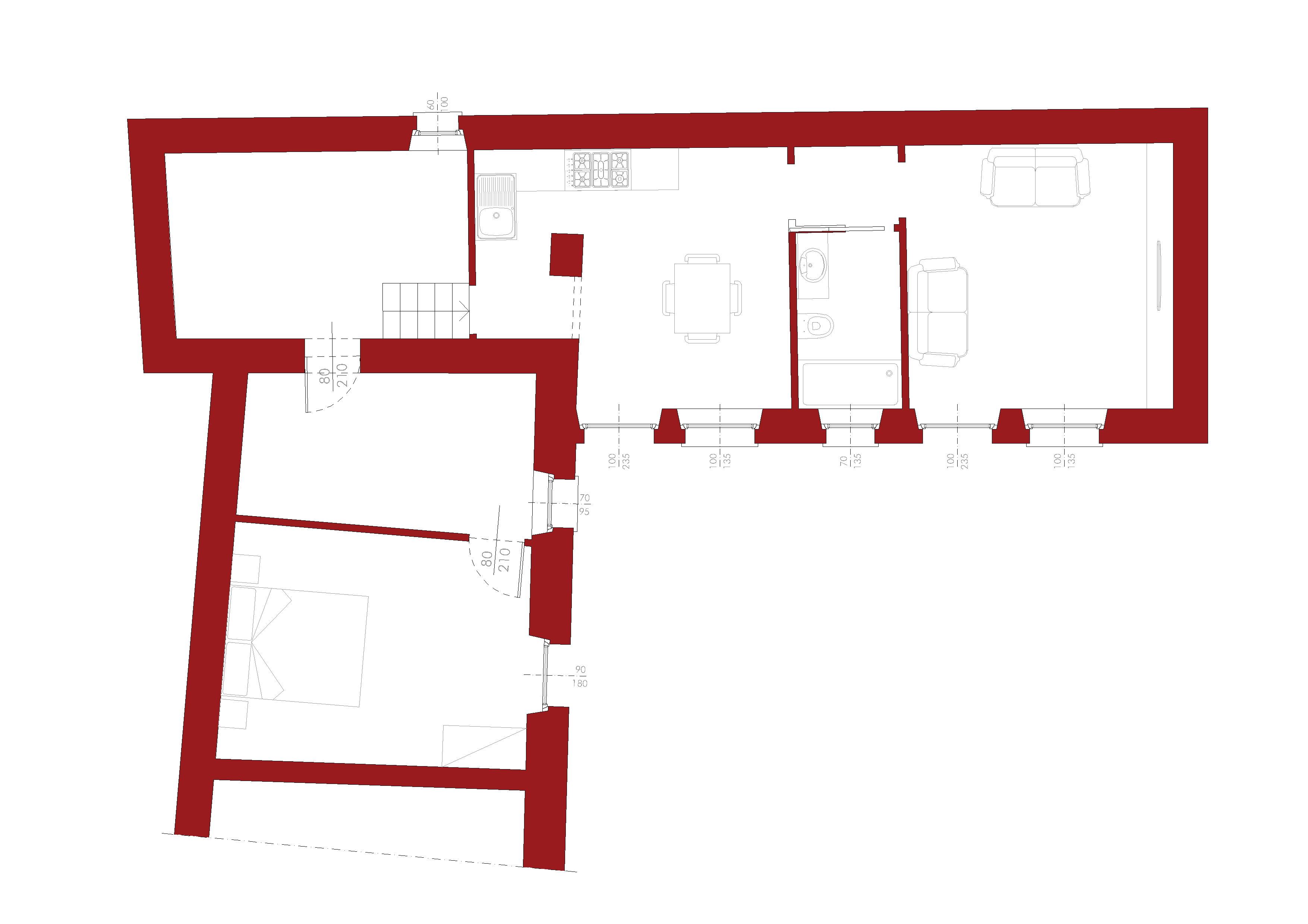 convert this floor plan into a realistic isometric 3d view of a full house show the space from an elevated angle with furniture walls and details visible stile contemporaneo use the same furniture as shows on the plan do not change the orientation of the floorplan