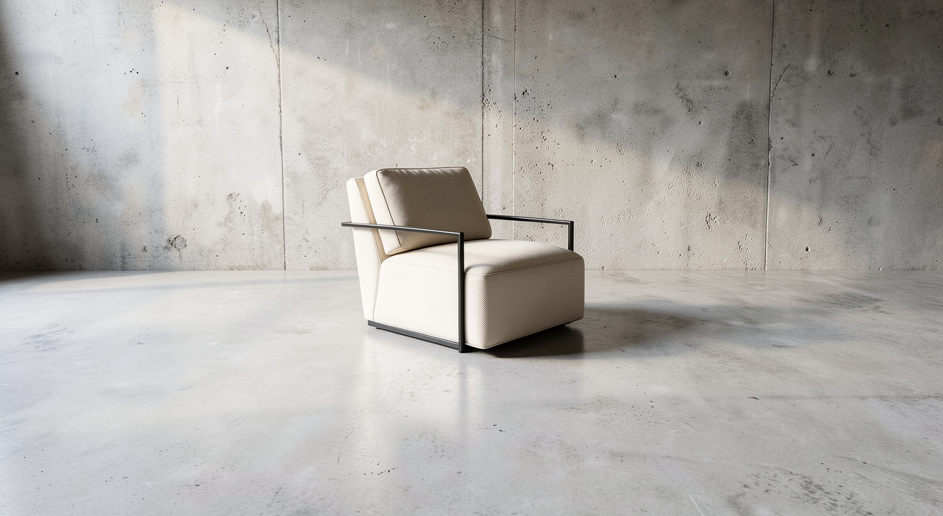 interior architectural visualization derived from roof massing logic ceiling is expressed as a suspended inner volume floating within the room gap between ceiling and walls creates a continuous shadow reveal strong sense of containment within a larger void no exterior references 14 foot high walls 12 foot tall floor to ceiling windows empty white plaster interior wide angle architectural interior view natural daylight priority suspended ceiling volume and spatial depth