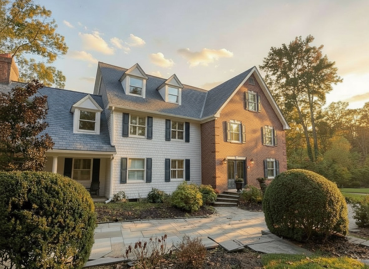 change the siding color to a weathered grey cedar shake don t touch the brick