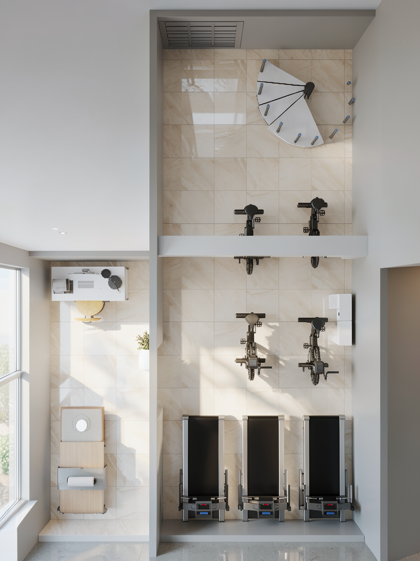 convert this floor plan into a realistic isometric 3d view of a full house show the space from an elevated angle with furniture walls and details visible furniture to be bright clean and modern cream color couch and feel and white throw rug kitchen cabinets in white shaker with a crown moulding on top all fixtures on faucets door handles and faucets to be matte black bathroom shower to be white subway tile and bath vanity to be floating white oak with a white sink keep accurate with the fridge cabinetry doors and window placement as the drawing closet off of the master bedroom has a pocket door to provide access from the bedroom master bathroom has pocket doors going to master closet and master bedroom use the same furniture as shows on the plan do not change the orientation of the floorplan