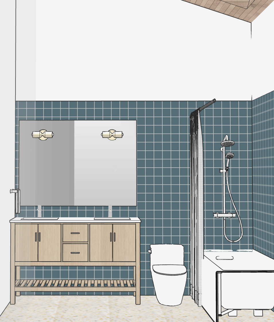 terrazzo floors blue square tiles light from ceiling skylight keep it similar to my drawing