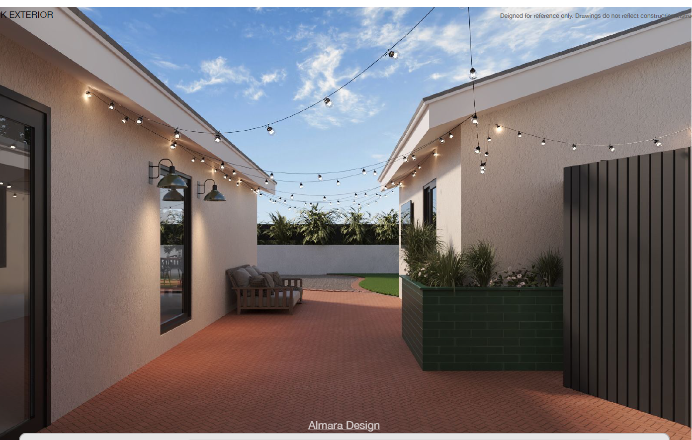 prompt transform this backyard patio into a warm mexico city inspired courtyard with rich texture layered materials and an intimate atmosphere use handcrafted materials and natural aging to create warmth and character replace flat hardscape with terracotta or handmade clay pavers laid in a herringbone or staggered pattern introduce stucco or lime plaster walls in a warm creamy tone with subtle texture add dark wood or walnut accents for doors beams or pergola elements include talavera style or handmade ceramic tiles as small accent details fountain edge stair riser or built in bench add lush courtyard landscaping large terracotta planters with olive trees citrus and agave trailing vines and bougainvillea climbing the walls layered greenery to soften the space create architectural interest and zones textured stone or clay planters at varying heights lighting should feel soft golden and atmospheric warm string lights or lanterns wall sconces with soft amber glow late afternoon early evening golden light overall mood mexico city courtyard warm soulful textured slightly rustic but refined intimate and inviting