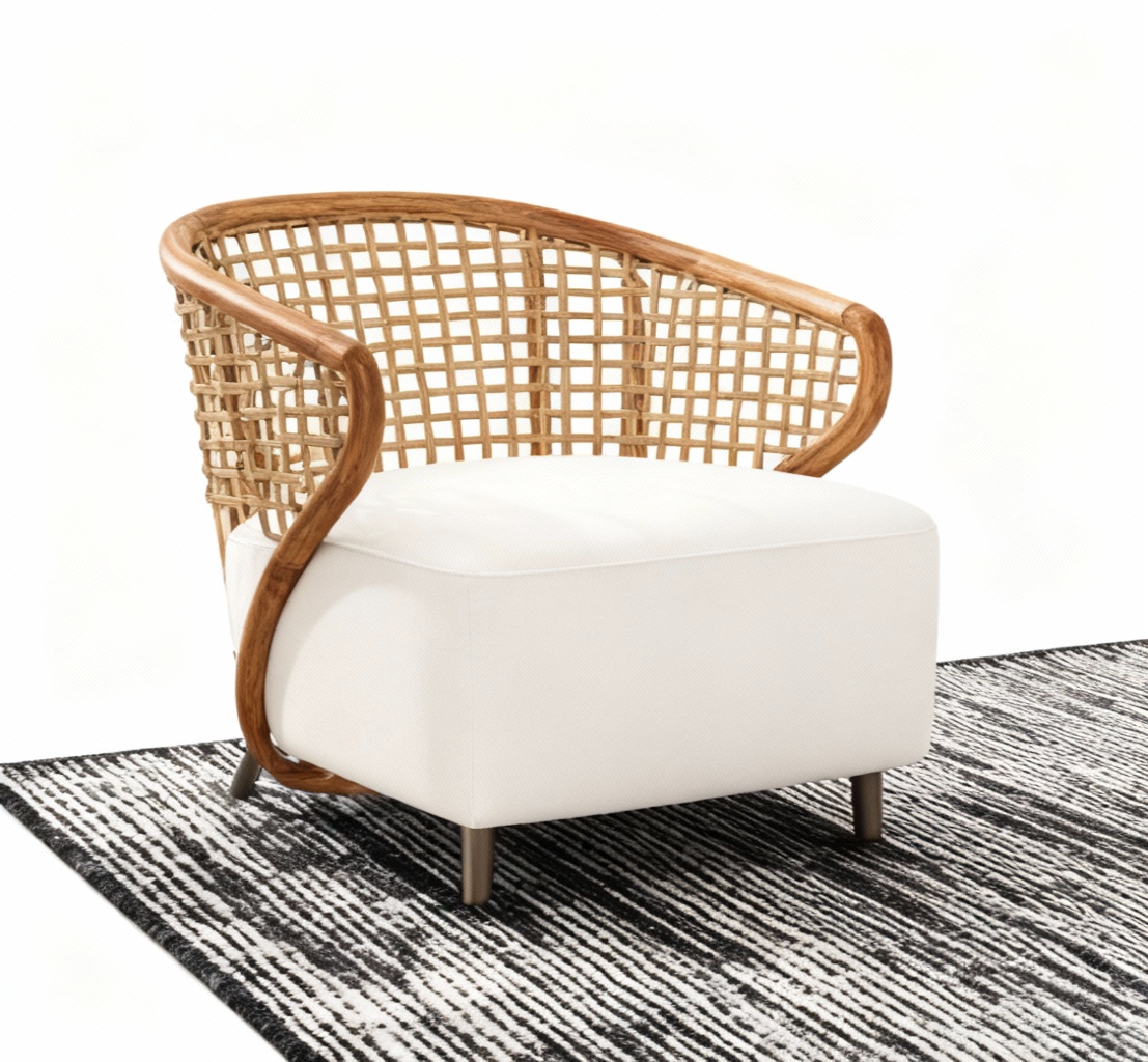 weaving inspired back white upholstered seat white background no pillow
