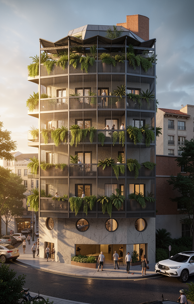 render at dawn with blurred suburban context