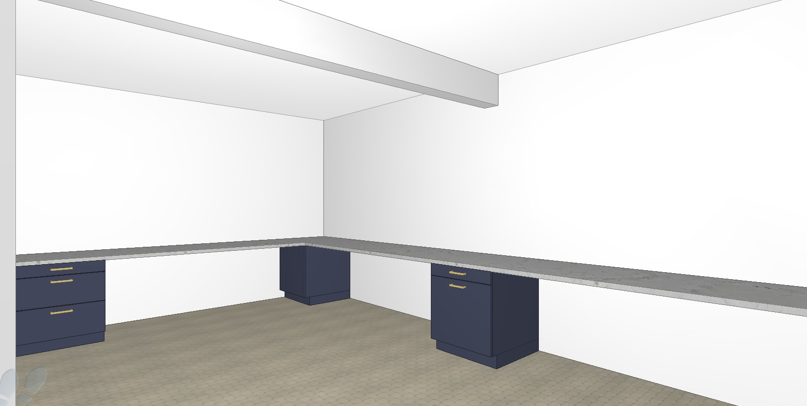 add office decor brighten room with downlights and have 3 older teenagers sitting at each desk section doing homework remove additional bulkhead around edge of room