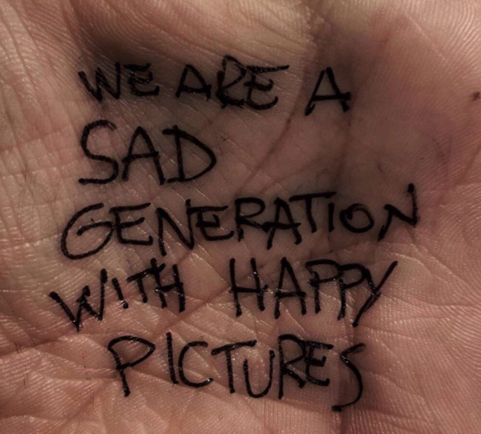 exterior shot person standing with hands out and on palm of hands there are the words for a reason