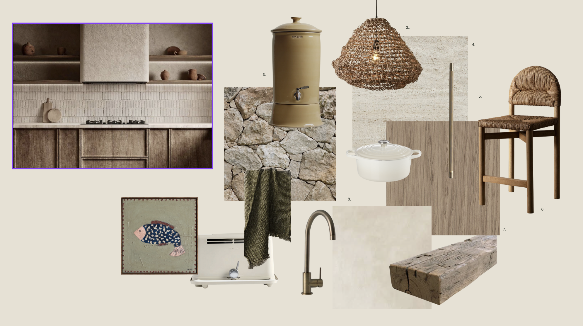 organic modern kitchen natural materials shot straight on looking at island bench and beyond
