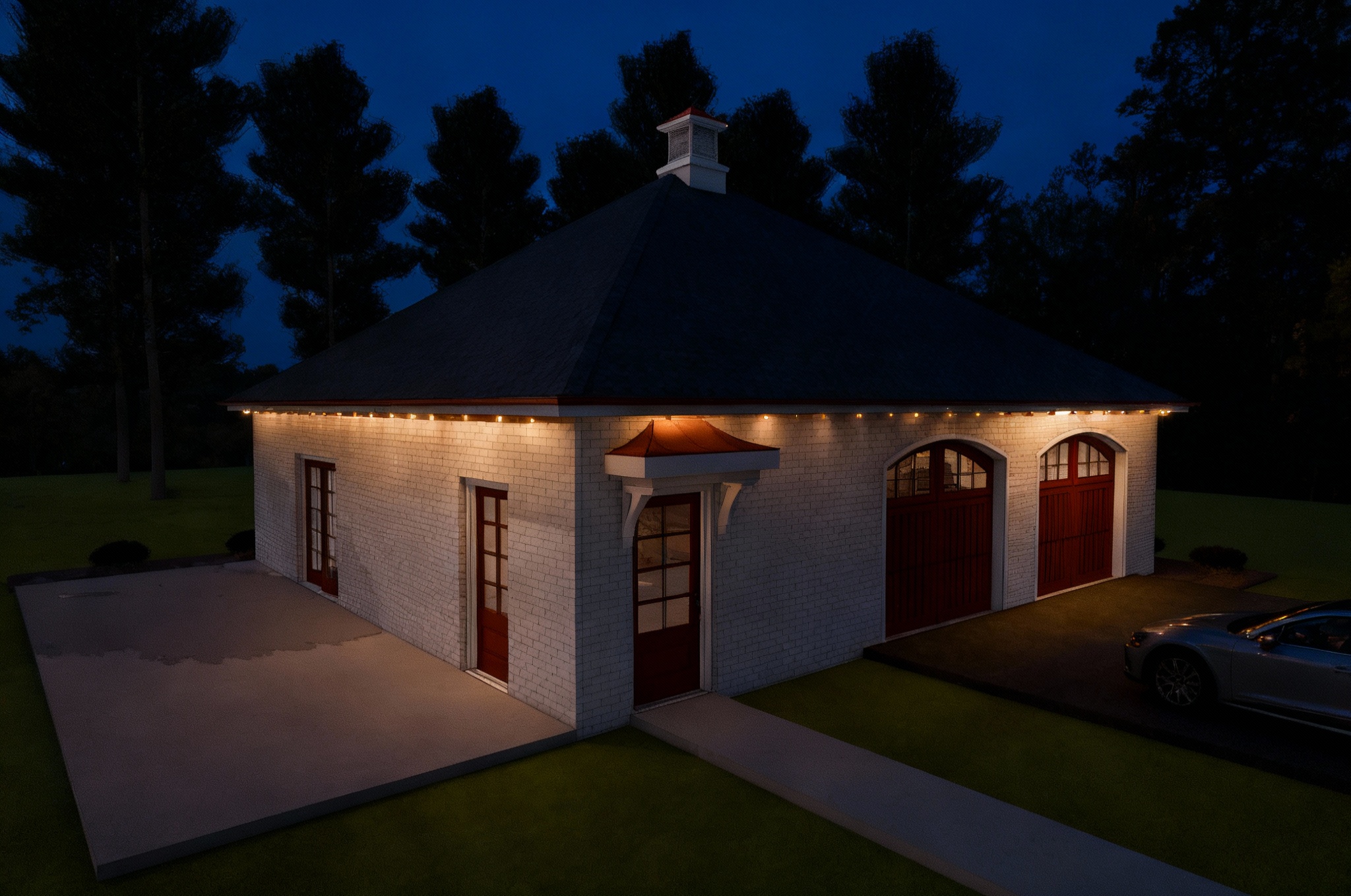 add lighting add car to to right side of the image