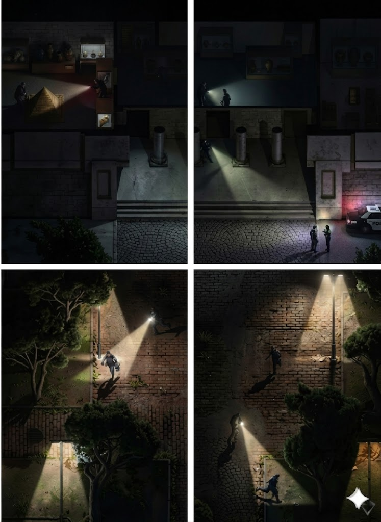 generate this image with 4k ultra high definition quality featuring exceptional clarity sharp details and photorealistic textures taake into account that the event happensa at night and with the lights inside the museum off in darkness do not add any lught points or anything that aint in the original document only enhance