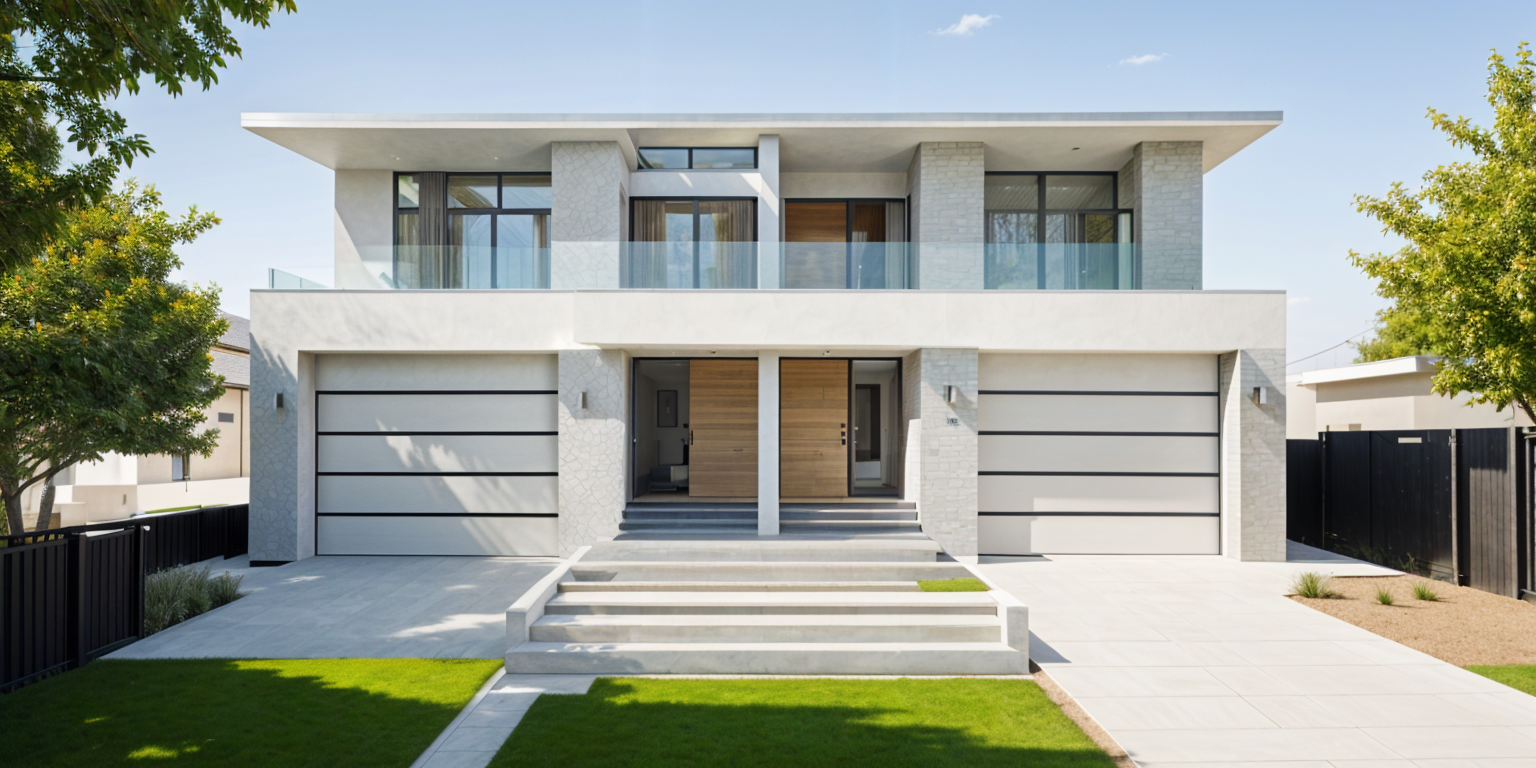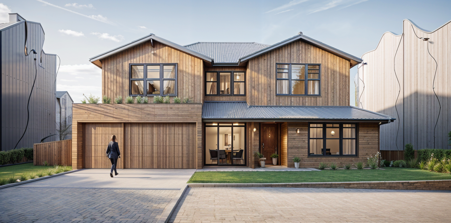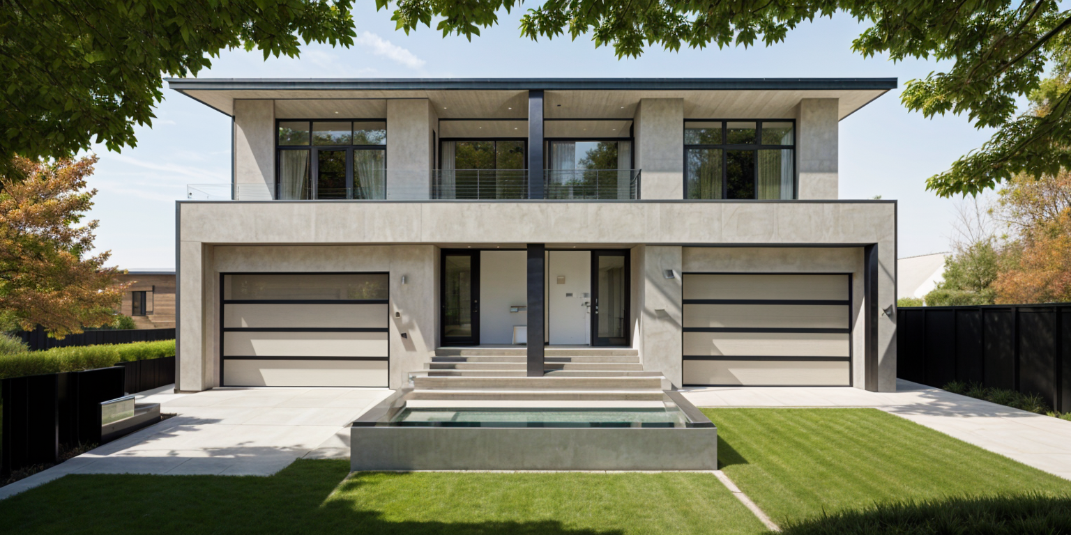 exterior shot add soft landscaping realistic architecture