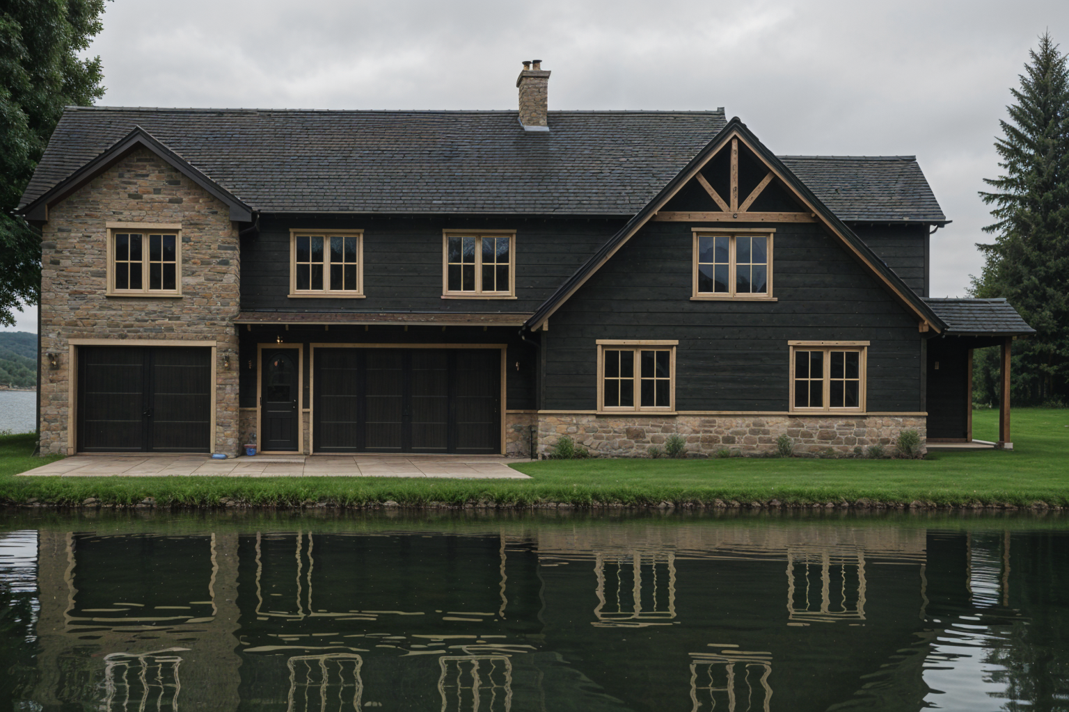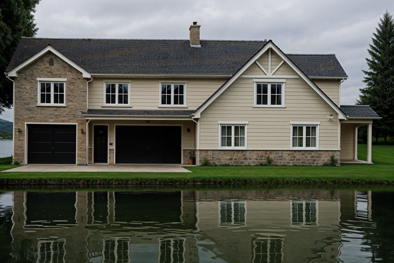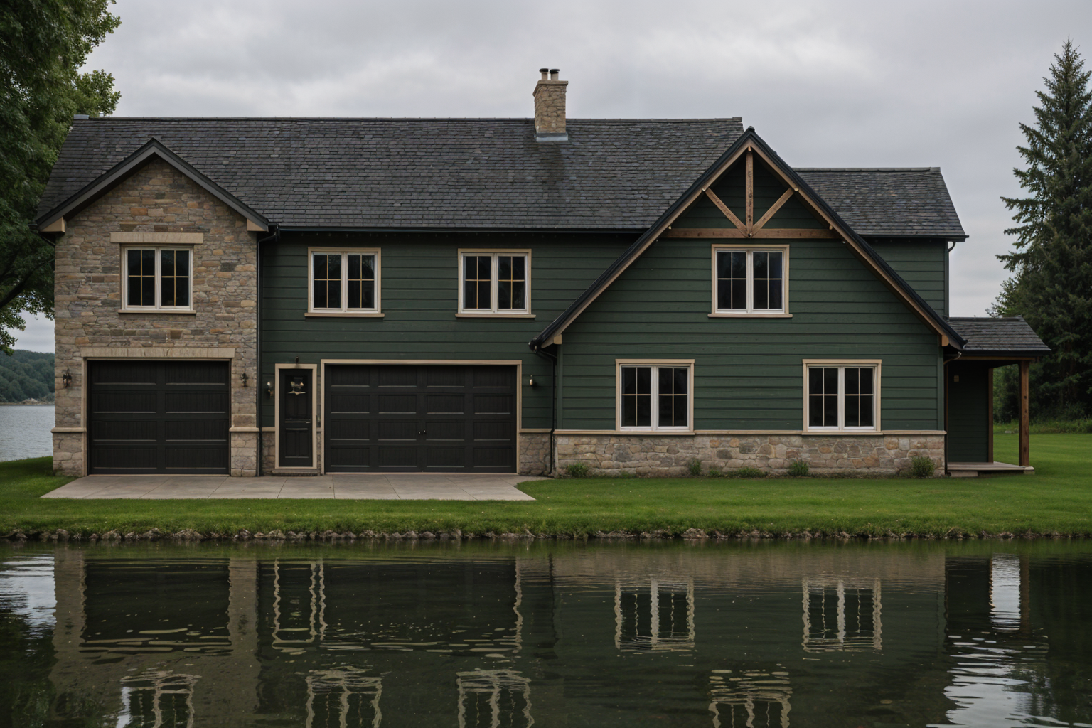 change the siding to a tan color and make the windows white with white trim on doors and windows