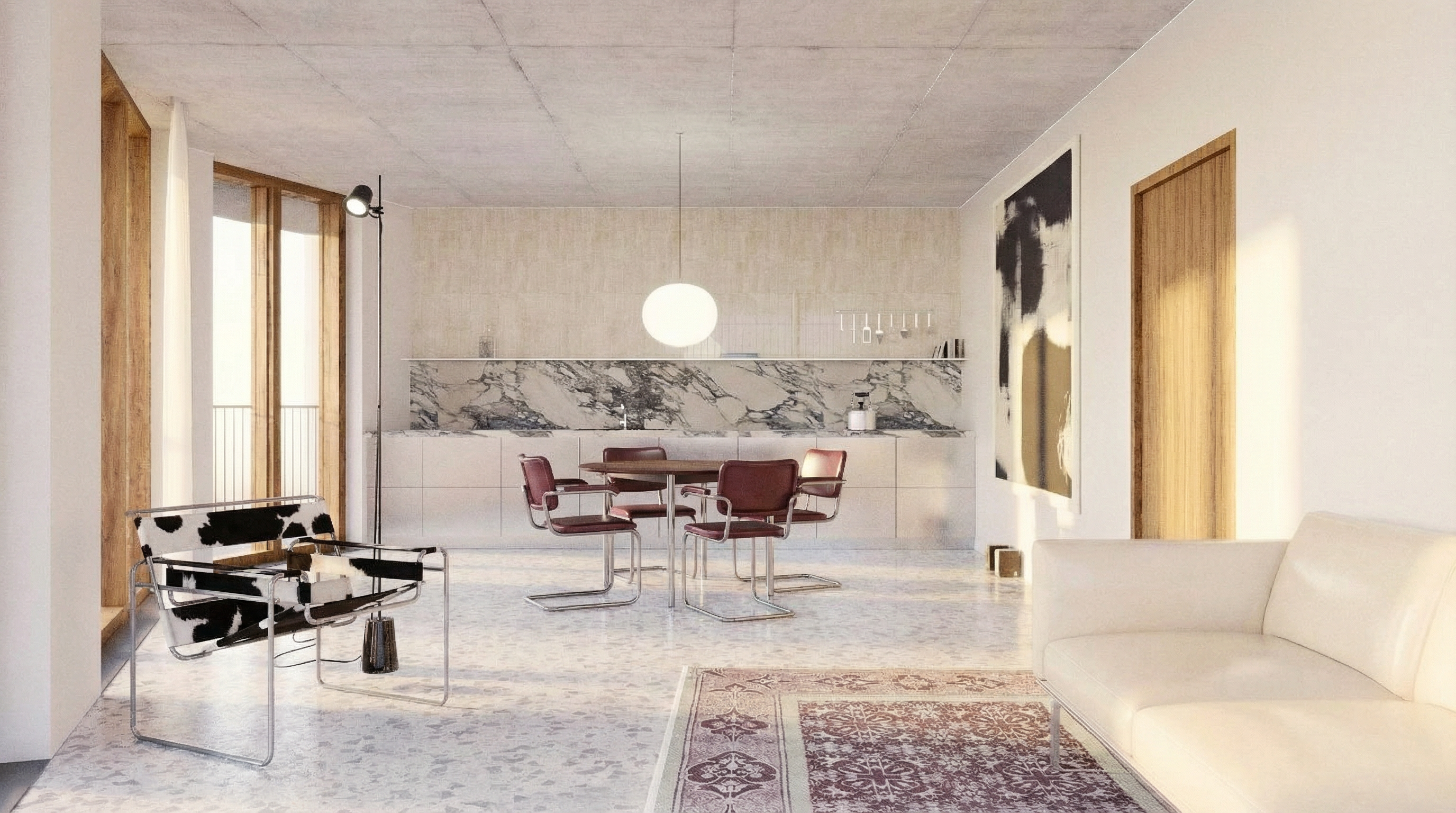 keep the image exactly the same do not change the room layout walls wardrobe door or floor remove the existing hanging ceiling lamp completely replace it with a modern ceiling light fixture similar to a contemporary multi globe design with several round glass spheres and a minimal structure mounted close to the ceiling no hanging cable the light should emit a soft warm glow and improve overall room brightness maintain realistic proportions shadows and placement do not add any furniture or modify anything else