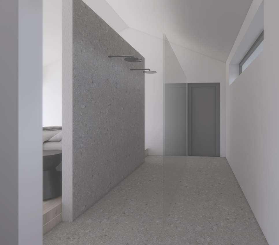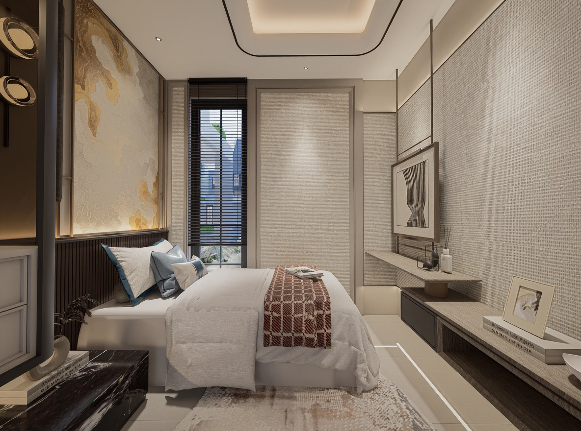 make it more realistic and modern keep the geometric make it a bright interior with a lot of sunshine