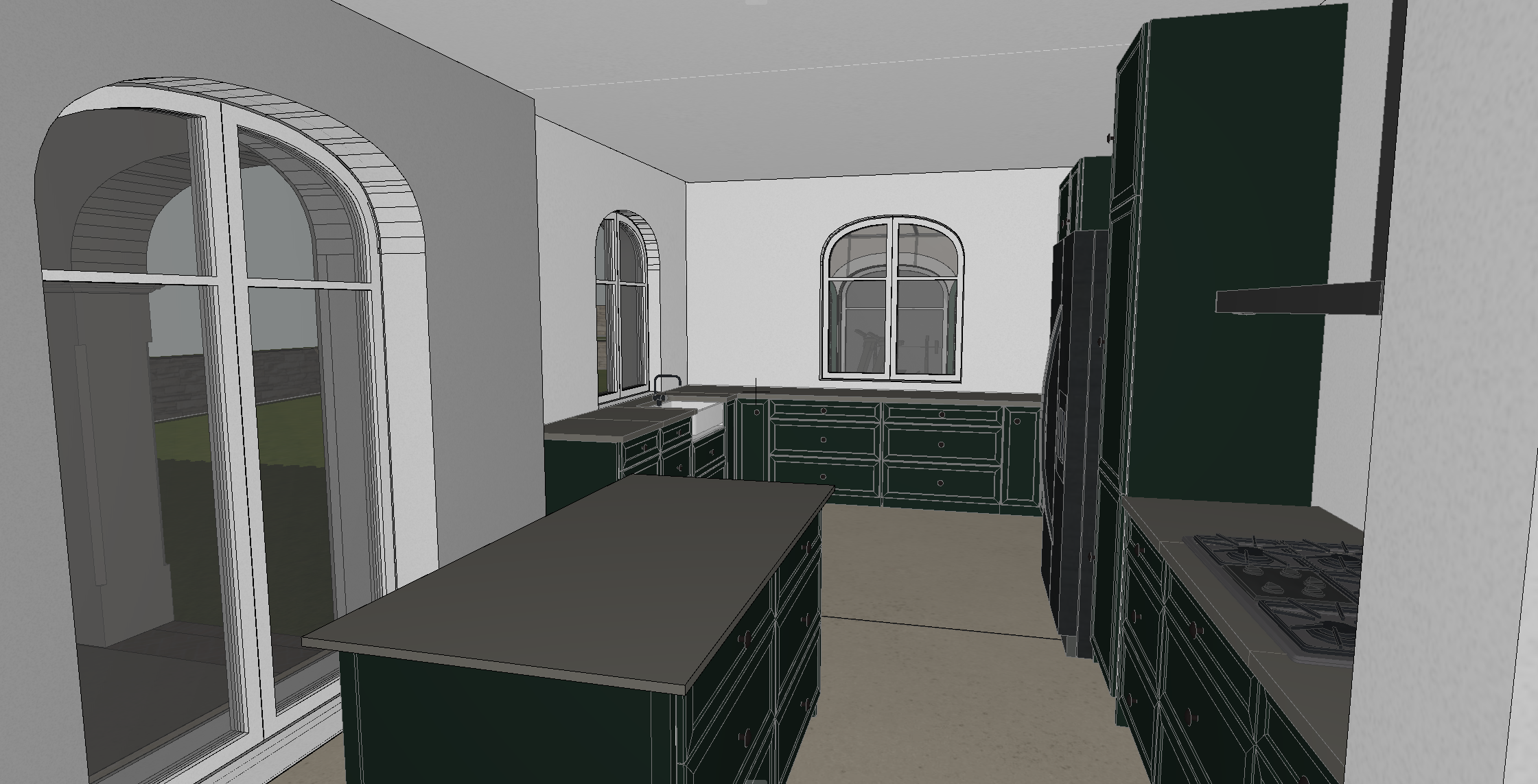 cuisine meubles teinte gris vert plan de travail en marbre murs enduit teinte beige tr s clair sol en grandes dalles de travertin haut des murs arrondi avec plafond maison de st tropez