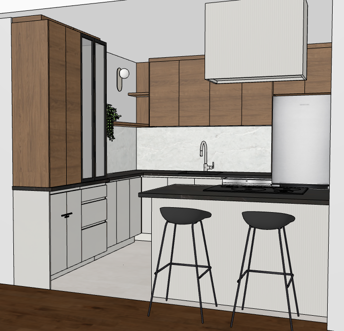 exactly like picture textured pannel for the island and hood in light beige floors are light beige stone tile