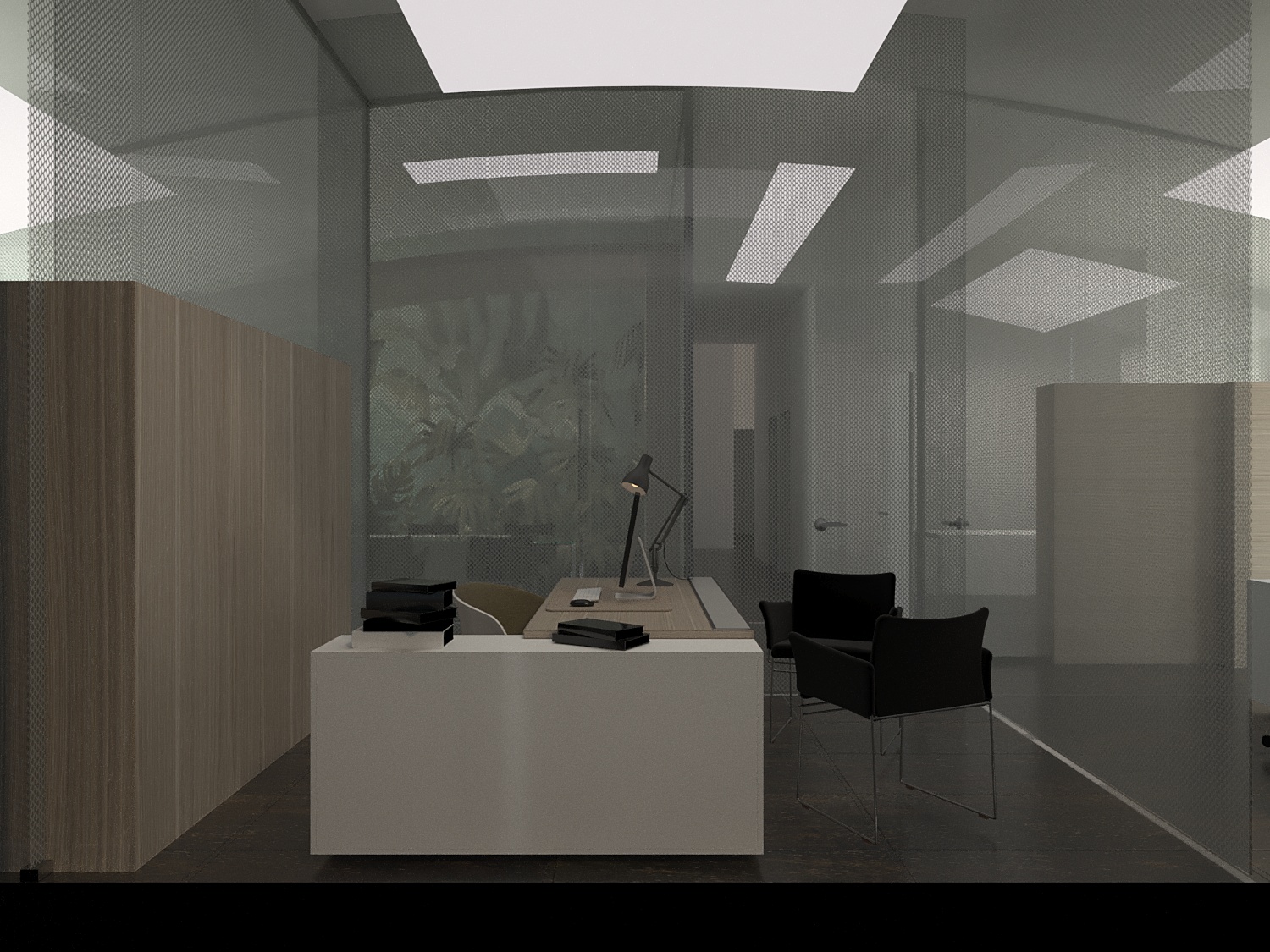 modernist interior shot black marble pavement architecture