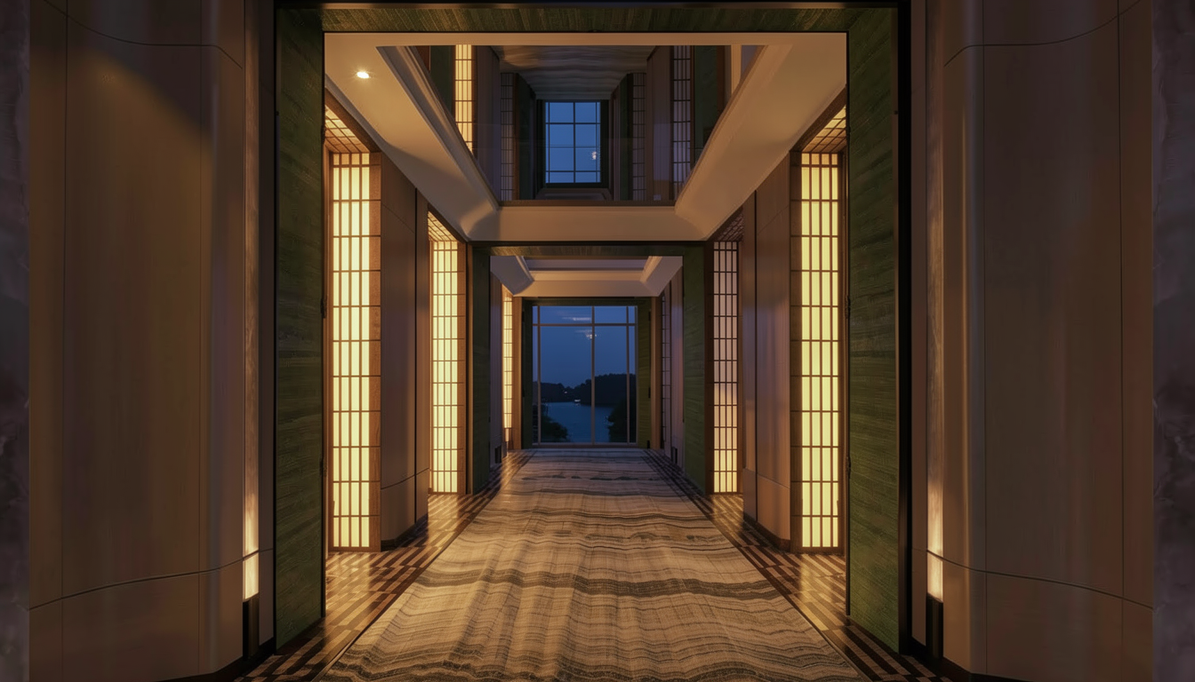 modernist exterior shot ultra realistic render of a modern residential house keep the exact model and proportions exterior finished with large white to very light gray precast stone panels modern pivot entrance door black aluminum triple glazed windows minimalist luxury design clean lines realistic stone texture realistic glass reflections soft natural lighting premium architectural photography high end curb appeal there is swimming pool in the back yard as well with fountains the soffits are dark wood grain aluminum add sun and cloud as well try to fade the black line seems on the precast stones so it look more real architecture