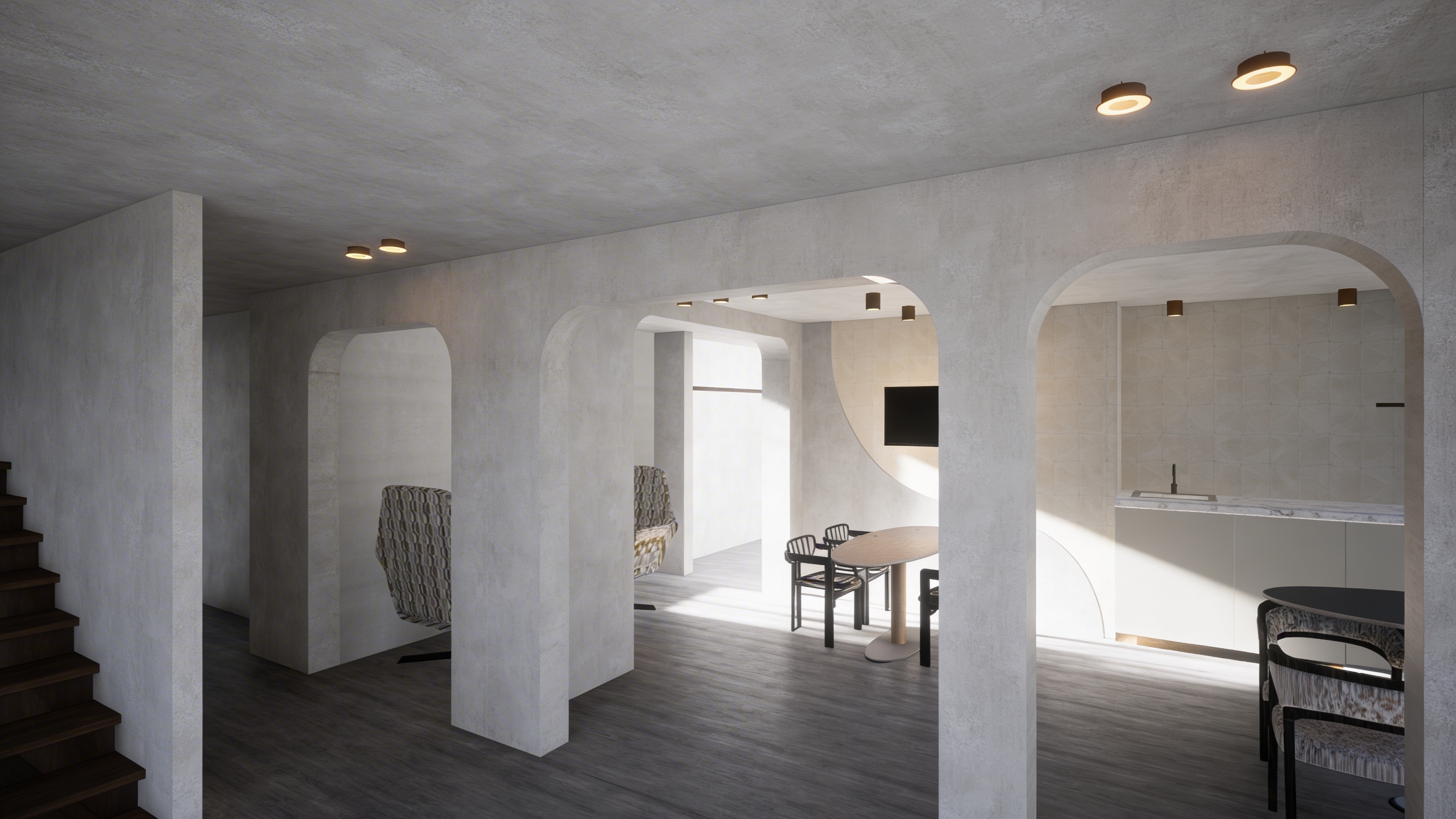 render the exterior elevation with the material palette colors and tones shown in the exterior phtograph in the references keep this 2d don t cover elvation with vegetation and roof will be asphalt shingle to match tone dormers have copper roof only front siding should be clean crown make roof slightly brown not gray add realistic background with sky and some trees add schematic vegetation to match the photo reference but keep 2d