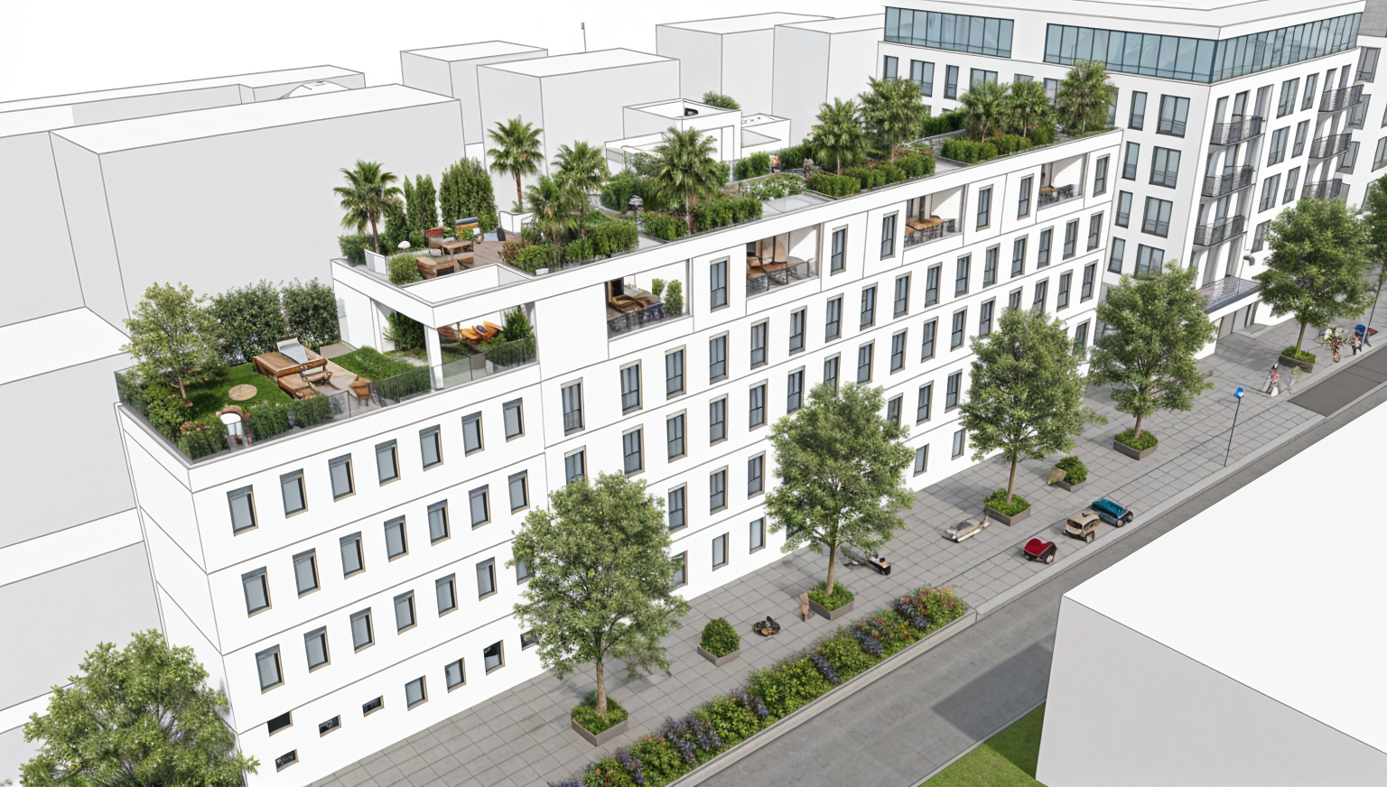 exterior elevation of a all white house