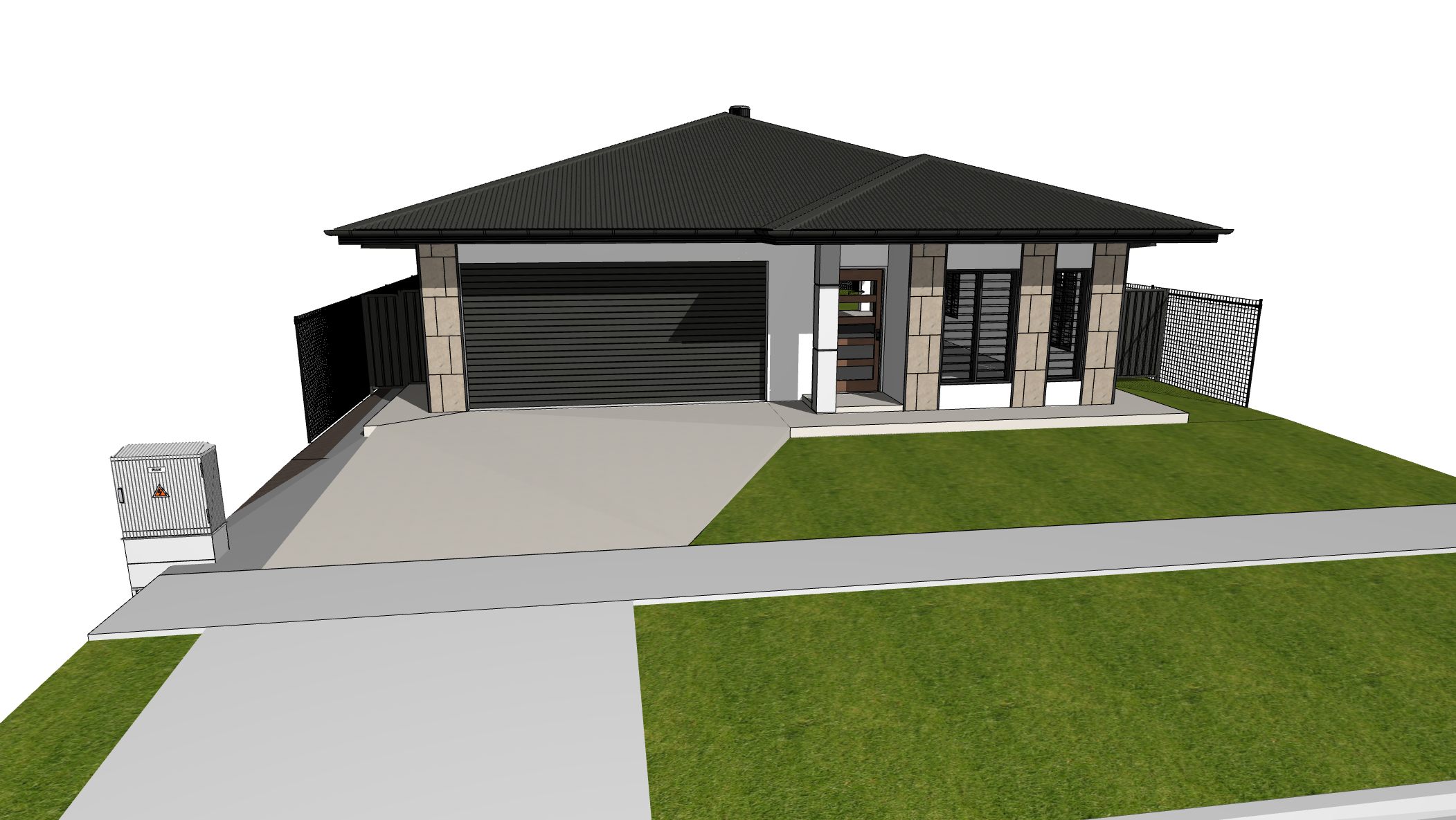 modern white walls with stonework landscaping