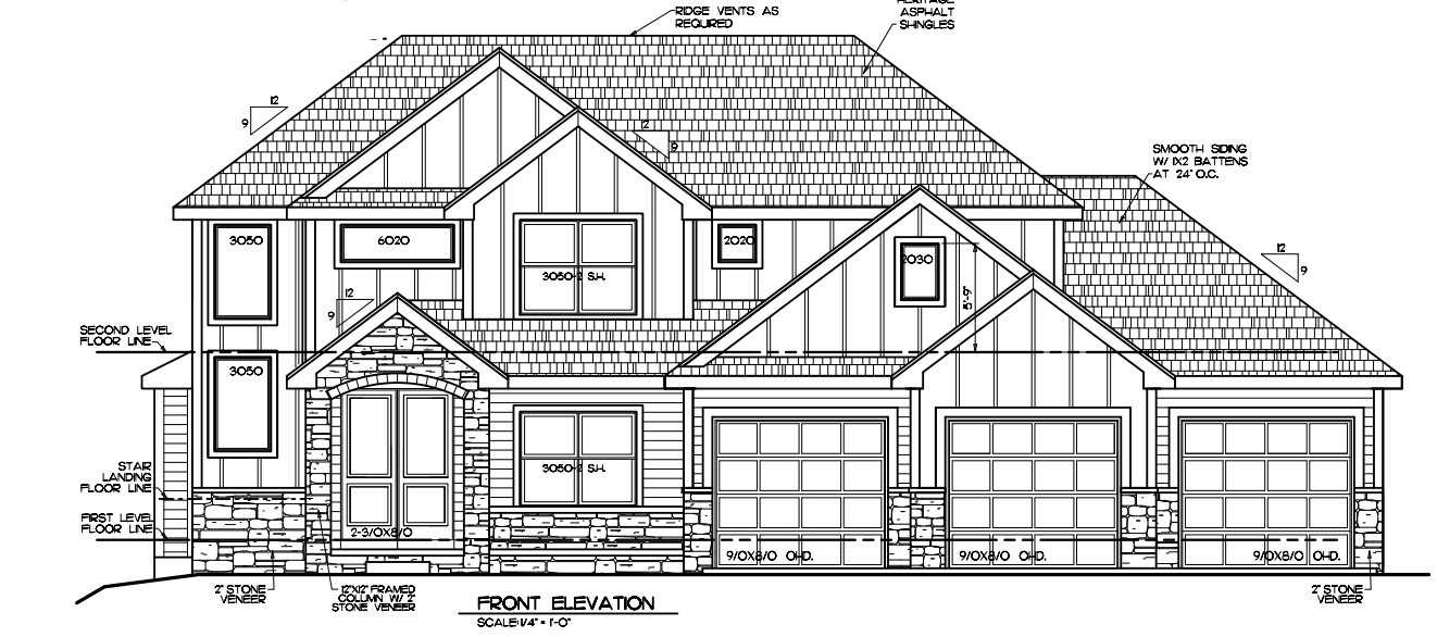 tudor revival exterior shot render a modern two story suburban house with a cozy atmosphere use a soft white for the exterior walls and a medium gray for the shingle roof the windows should have white frames incorporate a stone veneer in shades of light gray and beige on the lower portion of the walls and columns the garage doors should have a complementary light taupe color set the scene in a serene suburban evening with warm ambient lighting and a gentle golden sunset casting soft shadows architecture