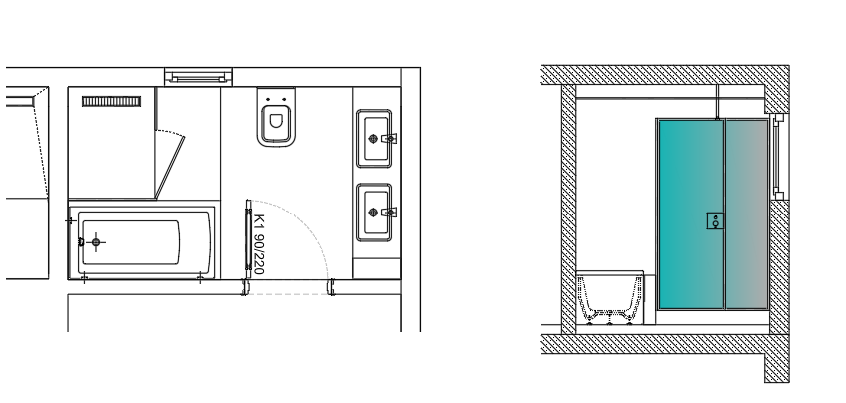 soldaki banyo plan sa daki du ve k vete bakan taraftan kesit calacata g r n ml seramik kapla modern bir banyo oldun du alan 15cm y ksekte olsun