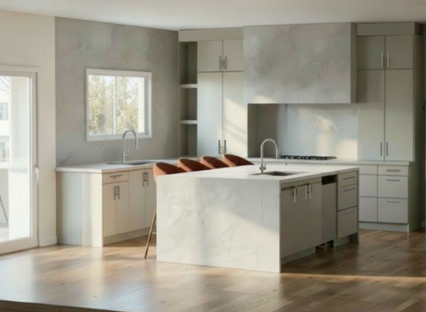 keep all the materials the same and lay out make the cabinet hardware look realistic in nickel and make the whole think photo realistic