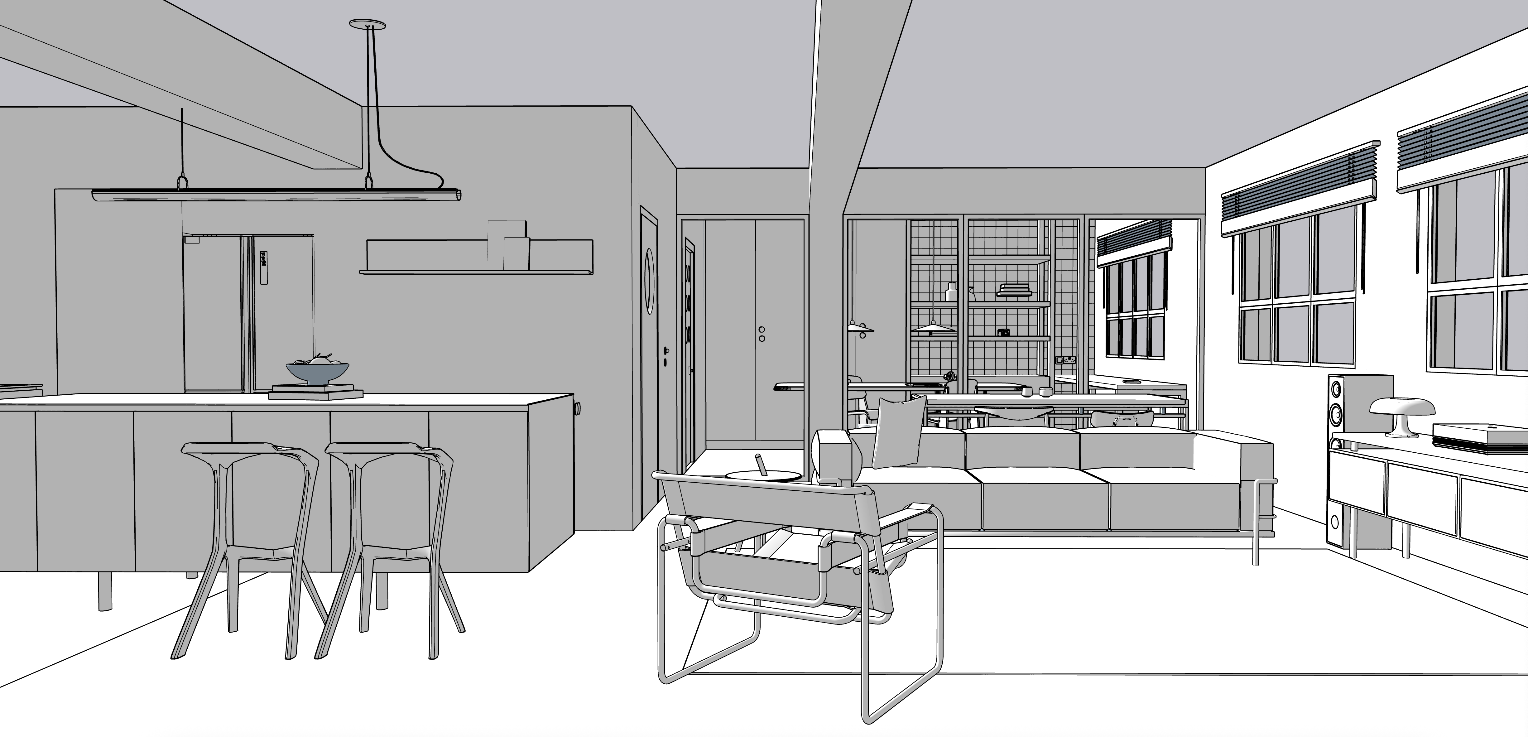 exterior shot concrete textured beams natrual daylight horizontal stainless steel island