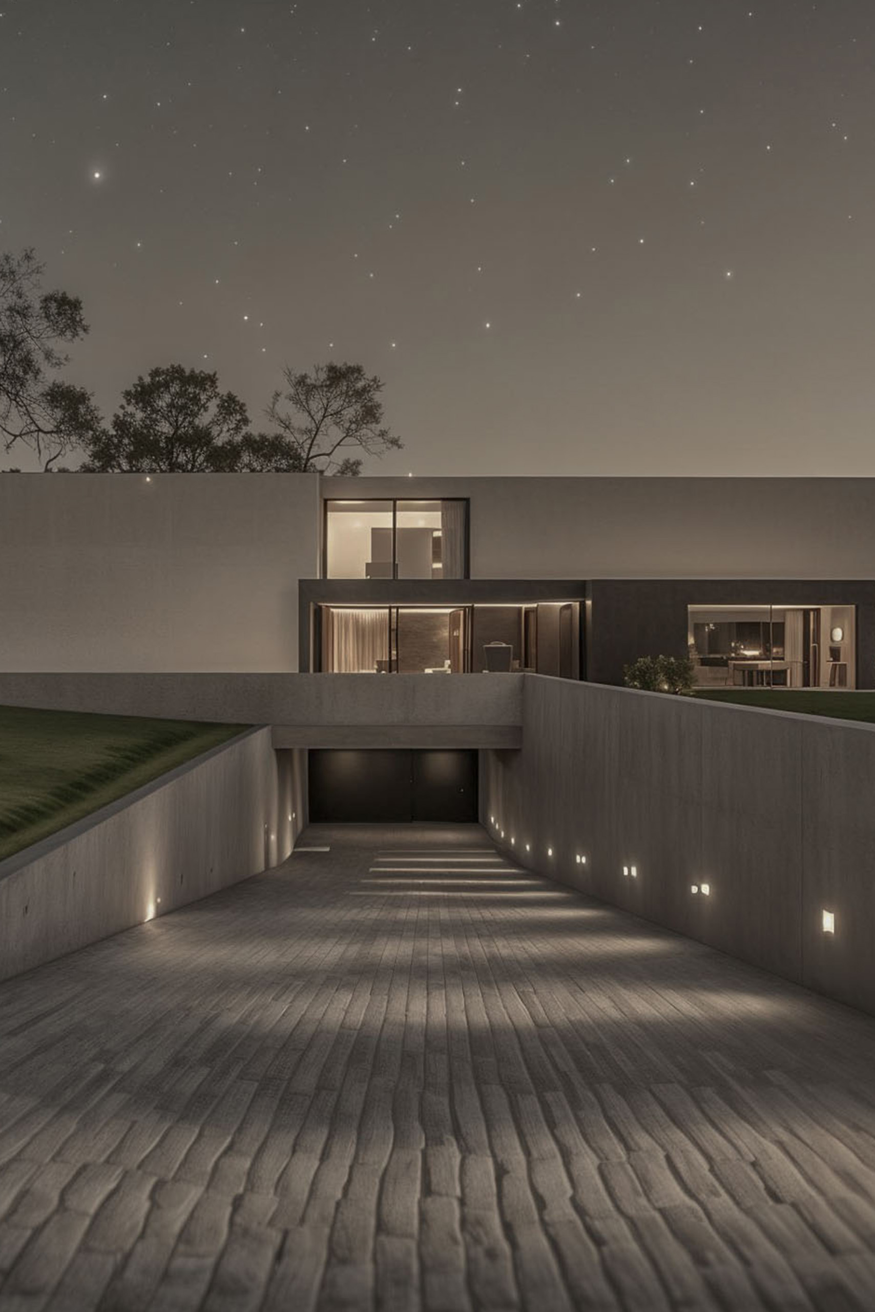 create a festive winter scene by adding realistic fresh snow covering the ground rooftops and subtle snow accumulation on the existing building s ledges and windowsills without altering the building s architecture materials colors shape or structure place a large fully decorated christmas tree with colorful lights ornaments and a glowing star topper prominently in the foreground or nearby yard surrounded by soft snowdrifts infuse a magical holiday atmosphere with warm golden christmas lighting strung along the building s exterior edges glowing windows with interior holiday lights visible through glass and a twilight sky with subtle sparkling snowflakes falling gently maintain exact original composition lighting direction perspective and environmental details for photorealistic architectural rendering