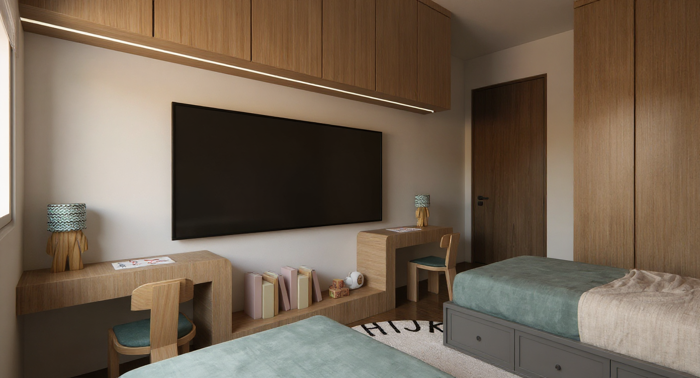 high ceiling office interior minimalist style few small plants interesting dramatic shadows dark wooden floor brown walls with light wall moldings subtle copper accents elegant wall paneling warm atmosphere elegant and photorealistic high qualit