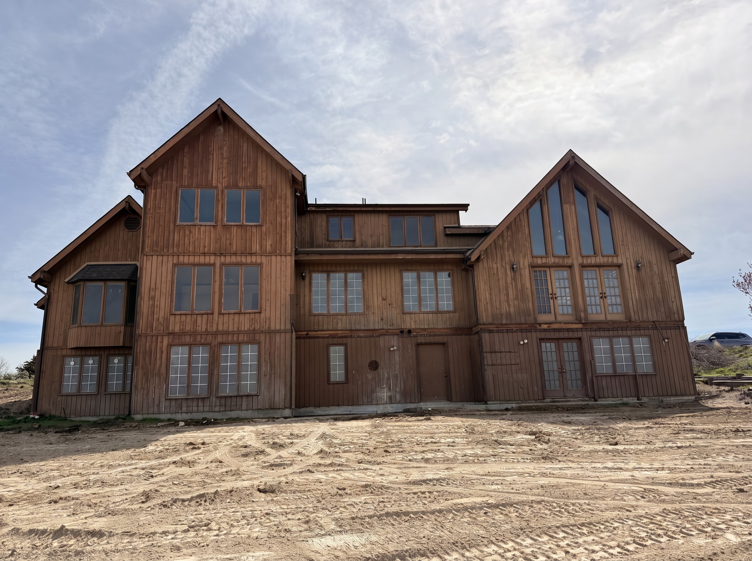 replace the wood with brand new wood in a greyish brown color do not change or add anything else to the structure
