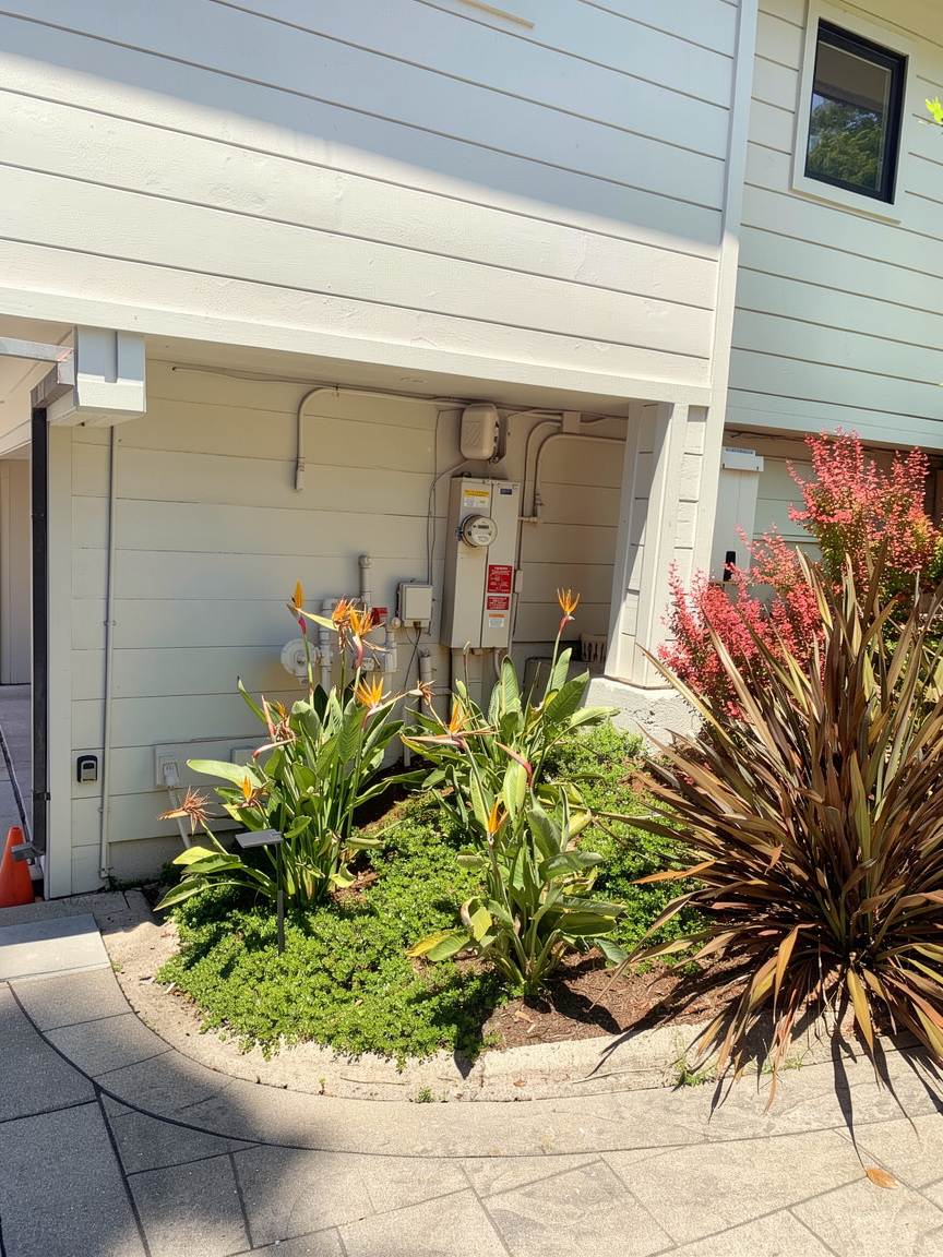 can you enhance this plan in terms of materiality the darkest red is red terrazzo the lightest color is the overall floor surface which i light terrazzo the wood is pine wood the basic red is terracotta the yoga studio has yoga mats on the floor the green are plants in planters do not change the layout the red in the middle that you have made terracotta and plants is red terrazzo flooring in the toilets please correct this mistake