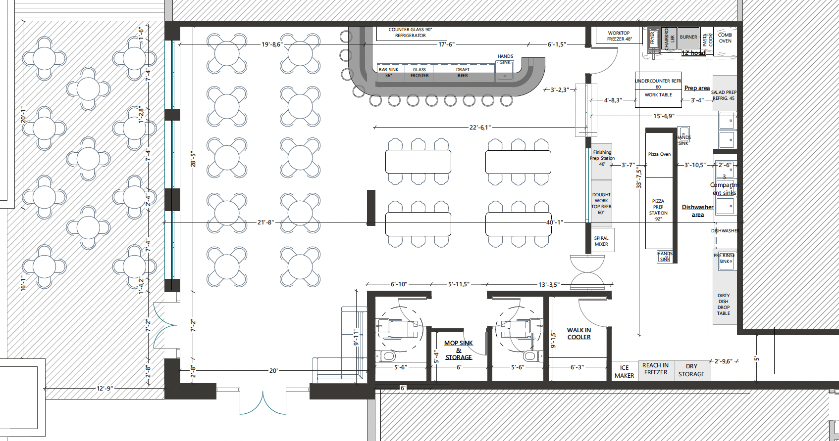 modern casual restaurant interior design for a brazilian italian fusion concept called brasiliana the space should feel warm inviting and vibrant designed for families and groups of friends enjoying pizza pasta risotto and carpaccio include a lowered ceiling with intimate warm lighting soft yellow tones pendant lights and indirect lighting to create a cozy atmosphere especially during evening service the bar area should be a focal point featuring colorful brazilian hydraulic tiles on both the bar front and the surrounding floor area adding personality and cultural identity the rest of the flooring should be neutral to balance the space design a beautiful expo kitchen pass that is partially open allowing guests to visually connect with the kitchen the pizza station must be behind a clean glass partition showcasing pizzaiolos working creating a live engaging experience without compromising cleanliness overall design should be modern clean and stylish but not overly luxurious approachable and full of character use natural materials like wood soft textures and subtle brazilian elements mixed with italian influence seating should accommodate both families and groups with a mix of tables and communal seating the vibe should feel lively welcoming and authentic reflecting a young growing brand avoid fine dining stiffness prioritize comfort warmth and an energetic dining experience