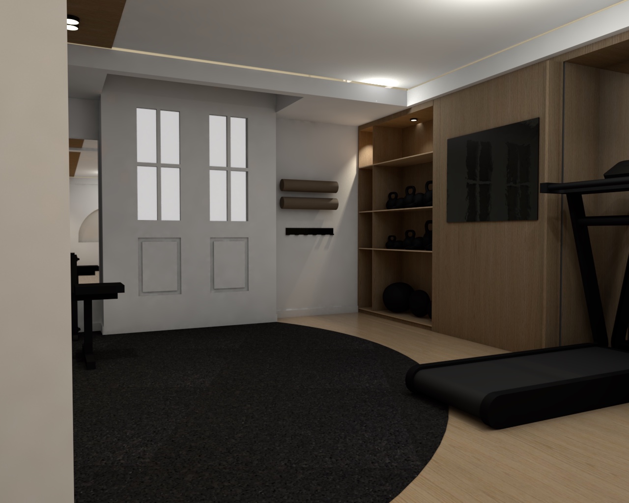 bois plus clair et lumineux ajouter des ballon de fitness beige sur les tag res