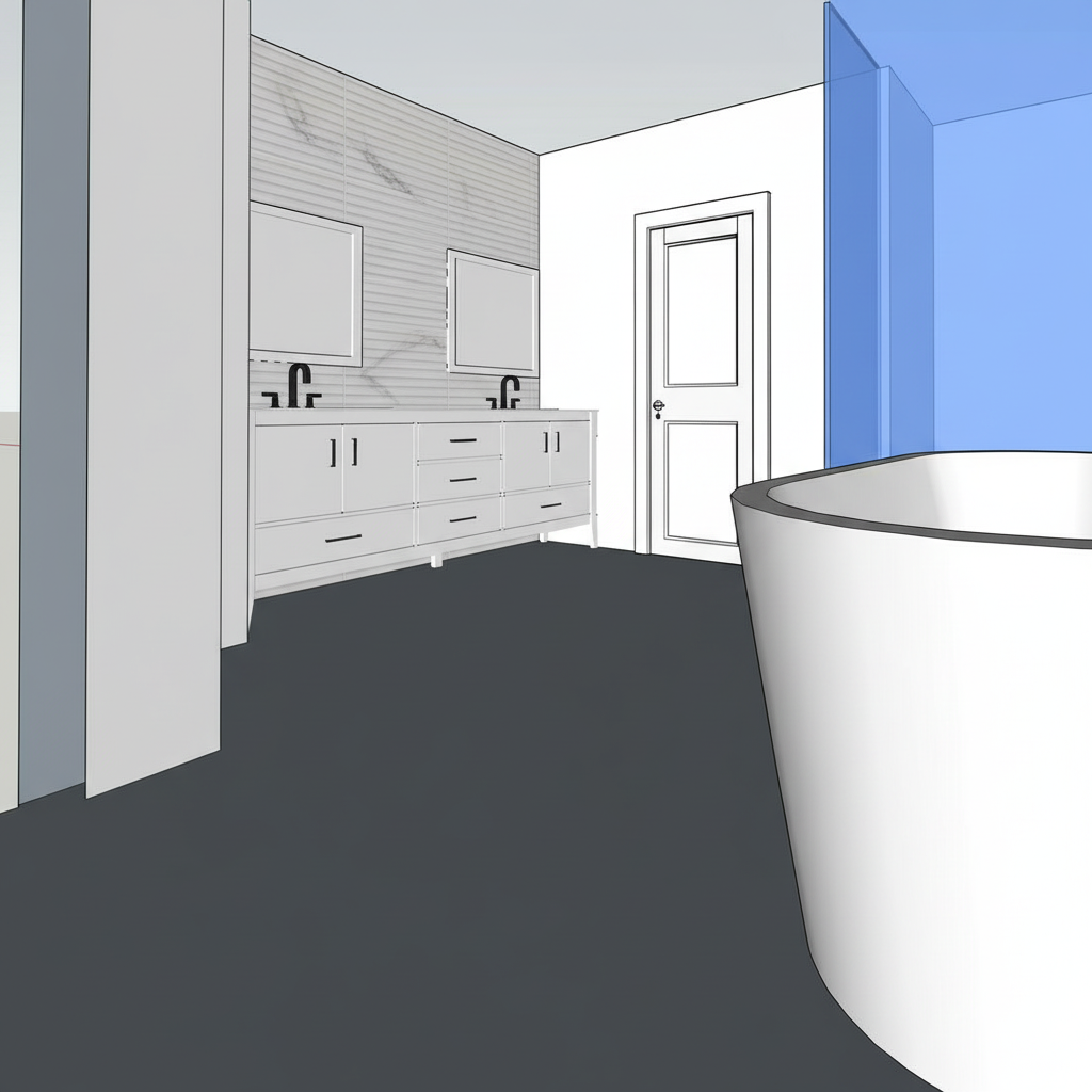 convert this floor plan into a realistic isometric 3d view of a full house show the space from an elevated angle with furniture walls and details visible carpet floors tile bathrooms modern furniture use the same furniture as shows on the plan do not change the orientation of the floorplan