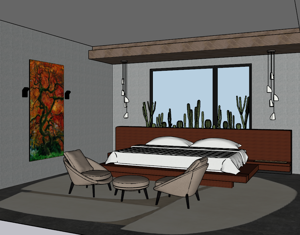 keep all colors and shapes the same the headboard is upholstered terracota fabric change the floor back to the original color